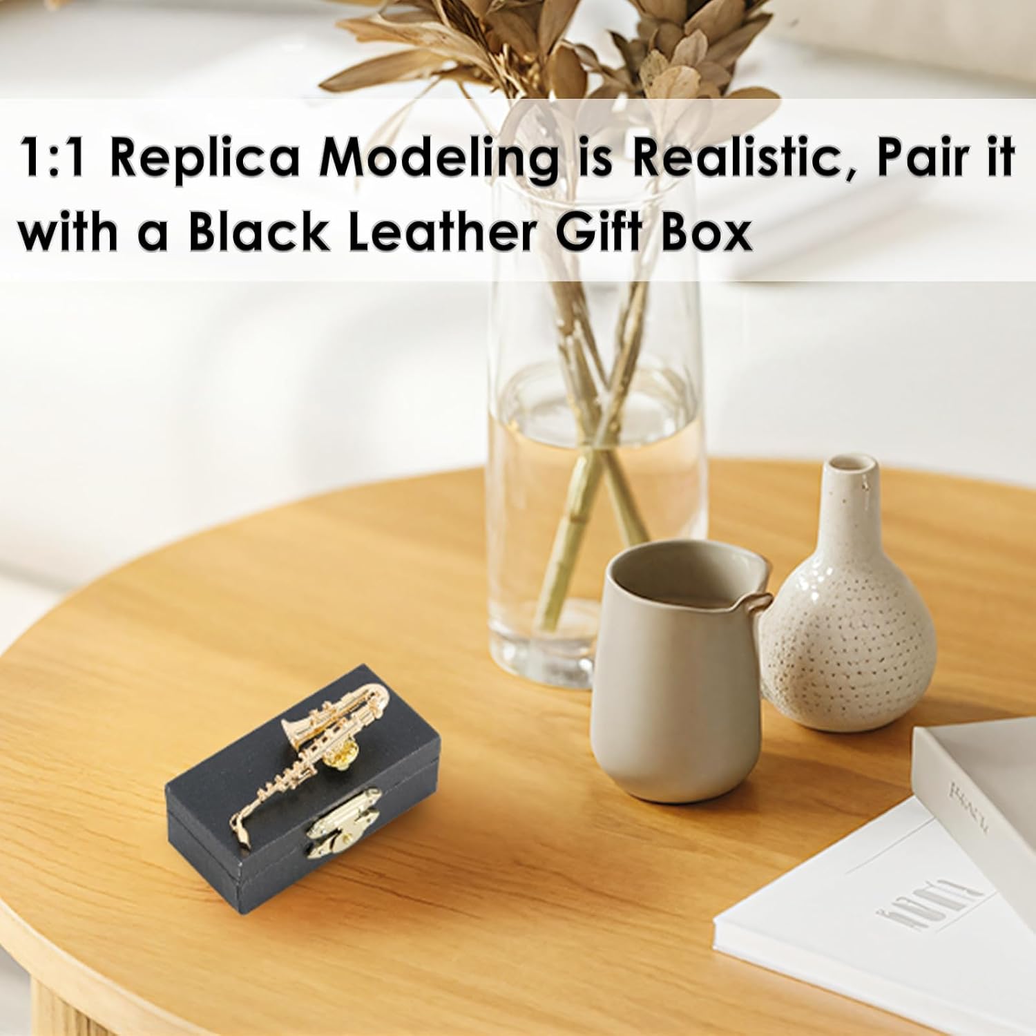 EASTROCK Saxophone Pin, 2.6inch Gold-Plated Alto Saxophone Lapel Pin, Miniature Instrument Brooch Pin with Black Leather Case, Saxophone Gifts