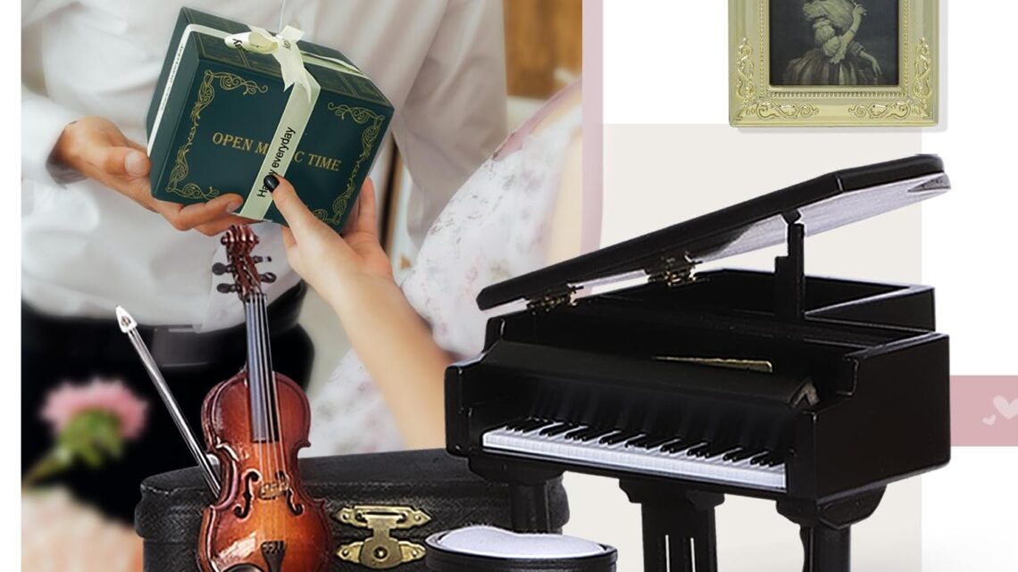 –WONDERFUL GIFT: This romantic grand piano music box set makes for an unforgettable Christmas or birthday gift. The soothing melody of the wooden music box will accompany your loved ones through the years and remind the memorable memories you both shared. Whether displayed on a bookshelf or a desk or as the miniature piano set of a music room in the dollhouse on 1/12 scale, this set transforms space into an enchanting mini world.