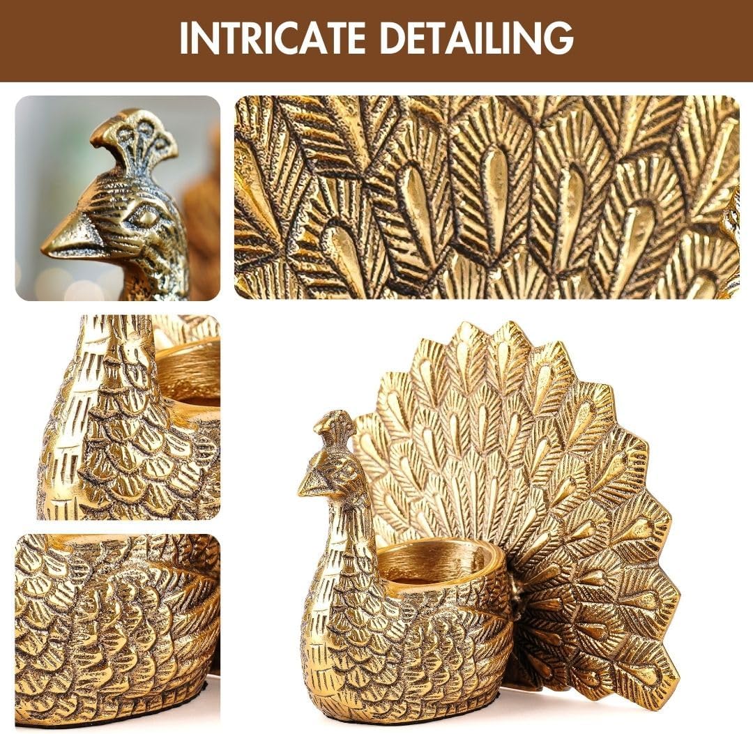 Metal Peacock Vastu Figurine for Good Luck and Love | Candle Holder for Home Dcor Tabletop Living Room Office | Showpiece Statue for Gifting (Scented Glass Votive Candle Included), Gold