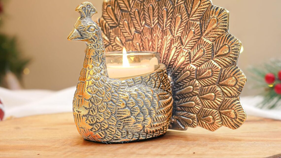 3. Versatile Decor Piece: Ideal for various settings, our Handcrafted Aluminium Peacock Candle Holder is a versatile accent piece that effortlessly elevates any space. Whether gracing the living room, bedroom, or serving as a captivating centerpiece on dining tables, its presence adds a touch of refined elegance to every setting. Furthermore, it’s perfectly suited for adorning mantels, shelves, or tables, enhancing any space with its graceful design and exquisite craftsmanship.