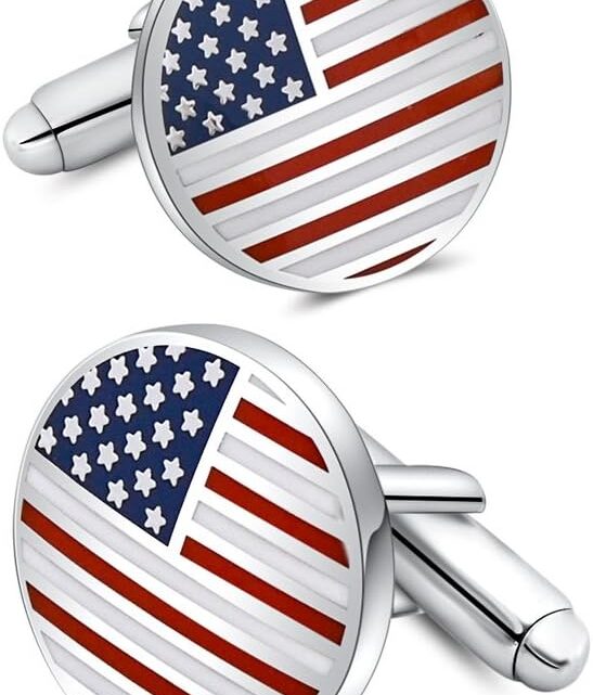 Mr.Van American Flag Cufflinks Platinum Plated Enamel USA Flag Cuff links Men’s Accessories Gift for Men