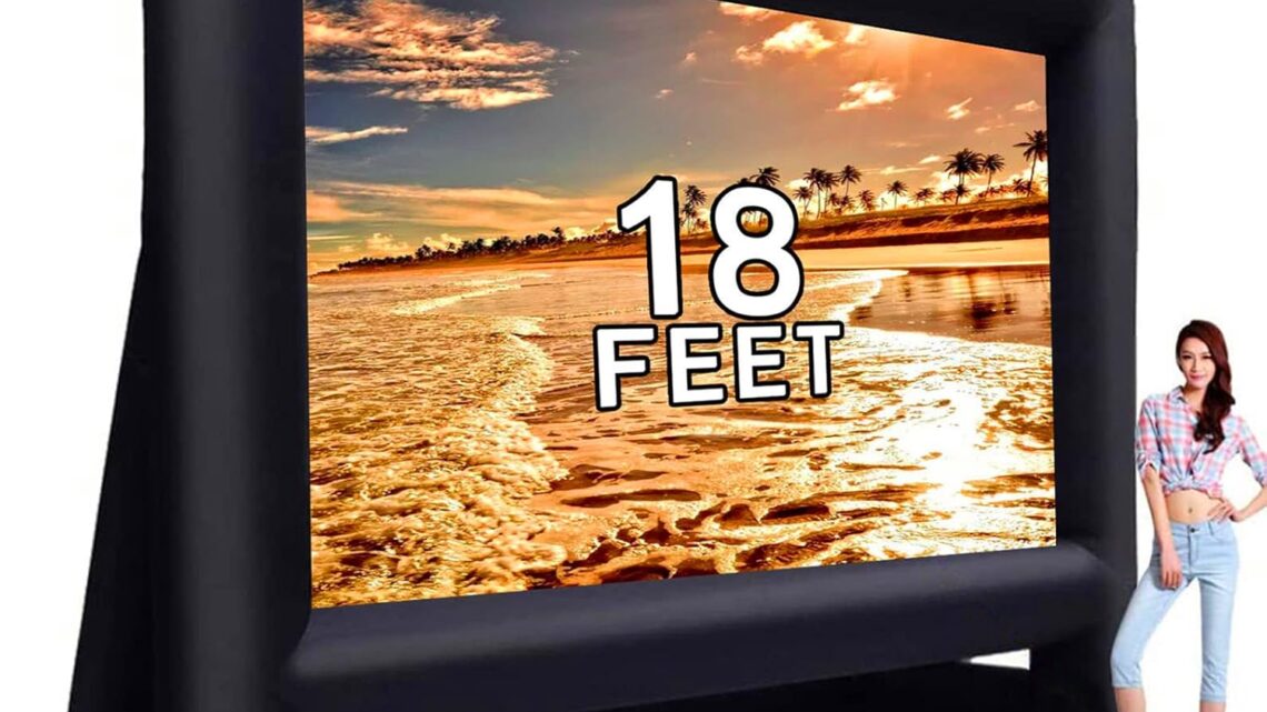 18 feet Inflatable Outdoor Projector Movie Screen – Package with Rope, Blower, Tent Stakes – Portable,Great for Outdoor and Indoor Party Backyard Pool Watch Movies