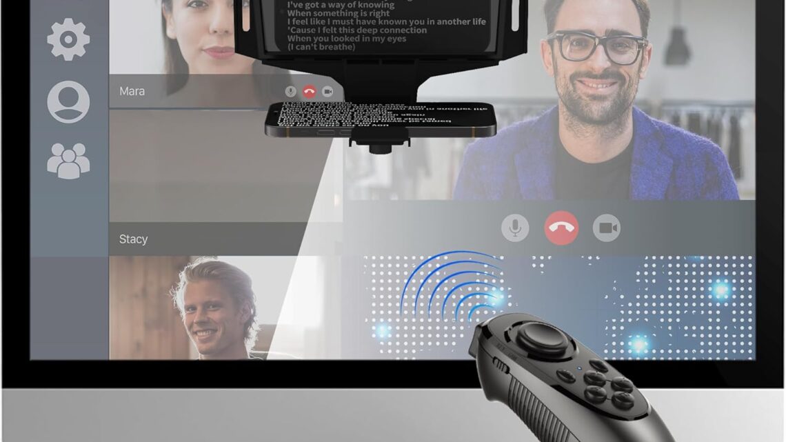 7.7-inch Portable teleprompter with Handheld, Desktop and Monitor Modes, 70/30 Beam Splitter Glass, Multi-Device Compatibility with iOS/Android Tablets, etc.