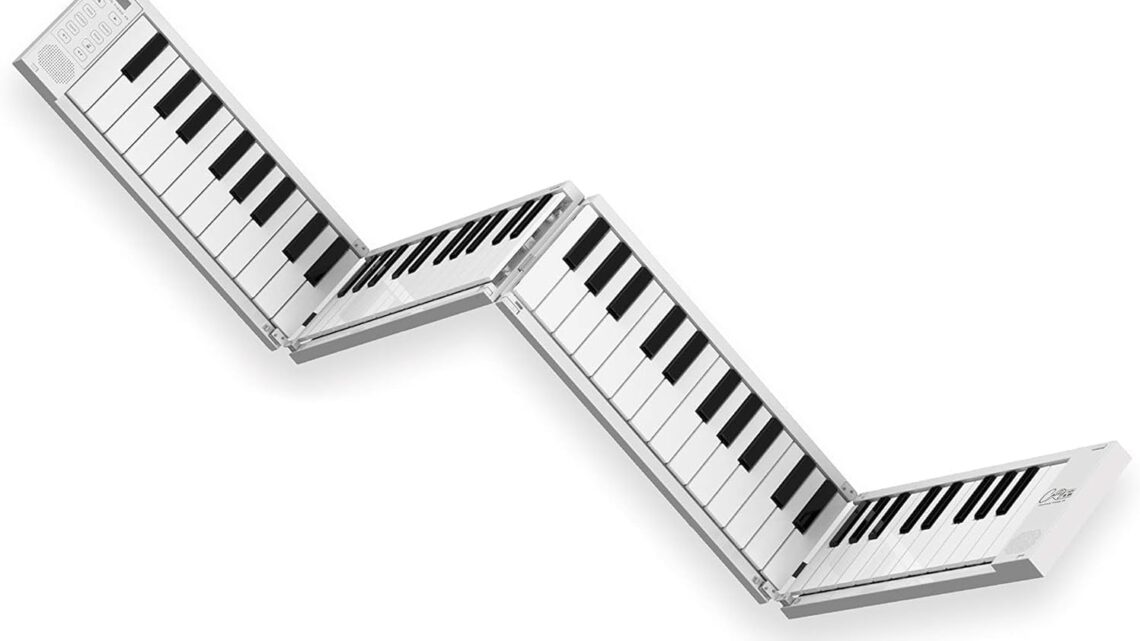 Full size folding 88-key piano that you can take anywhere Folds down to just 33cm in length and weighs only 1.6kg Realistic touch and feel due to unique keyboard design MIDI over USB for direct-to-device functionality Listen live with the built-in stereo speaker system Stereo 3.5mm headphone output for silent practice Built-in Sound Engine with 128 high-quality Voices Sustain pedal and handy travel tote bag included Up to 8 hours of playing time on a full charge Powered via built-in USB rechargeable battery
