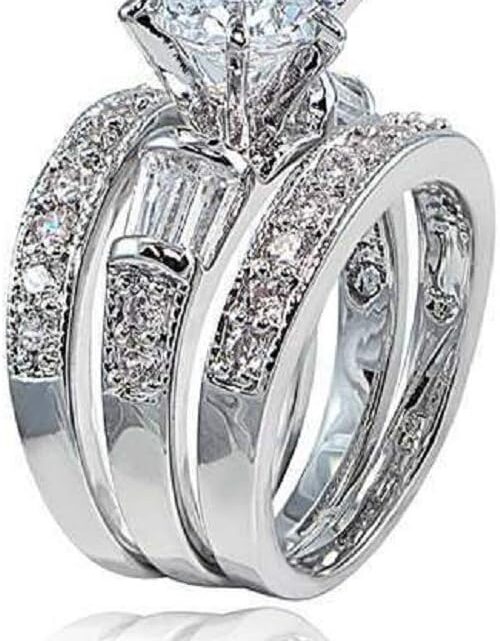 925 Sterling Silver Bridal Ring Sets Emerald Cut CZ Engagement Rings Vintage Promise Rings Platinum Big Women CZ Rings Set Bling Princess Cut Cubic Zirconia Size 6-10