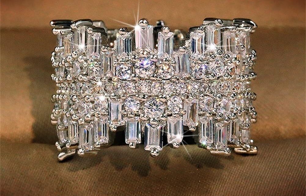 925 Sterling Silver Shiny Full Diamond Gemstone Ring 18K Gold Cocktail Ring Cubic Zirconia Promise Ring CZ Diamond Multi Row Rings Eternity Engagement Wedding Party Ring for Women Z.132 (US Code 8)