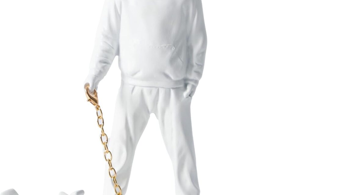 Banksy Haring Dog Sculpture, 8.5 inch Banksy Street Graffiti Art Statue Replica, Cool Stuff to Put on Shelves, White Accent Statue for Home Office Desk Table Bookshelf Decoration