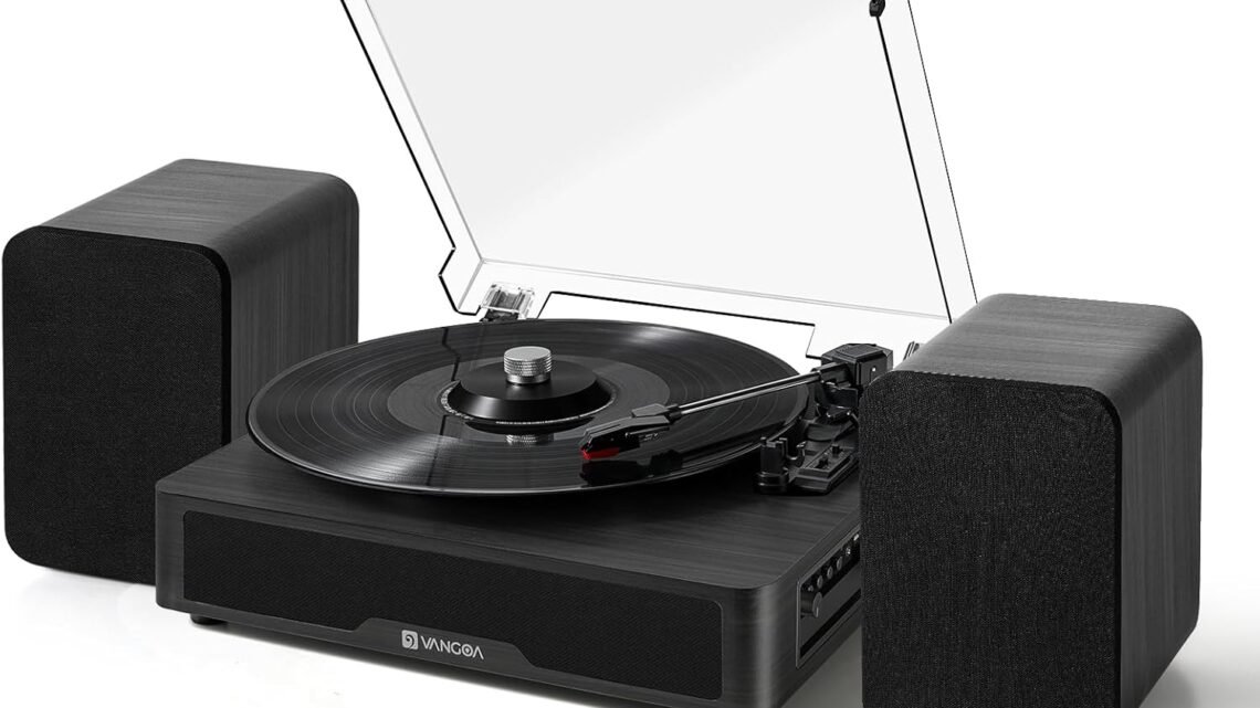 ✔️[Comprehensive Turntable Record Player] Enhance your living space with Vangoa’s Record Player with Speakers, doubling as premium House decor. This comprehensive package includes a well-crafted Black Record Player, Stereo Speakers, a 45 RPM Adapter, Vinyl Brush & Record Weight Stabilizer, Solid Platter and Dust Cover, ideal for vinyl enthusiasts