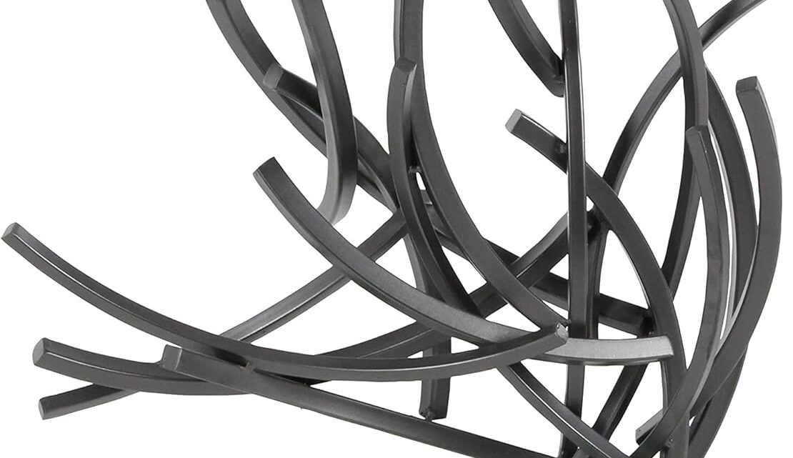 Add this set to your contemporary style collection and watch your living room come to life with style and elegance. Designed with felt or rubber stoppers at the base that prevent scratching furniture and table tops, as well as sliding around. This item ships in 1 carton. Please note that this item is for decorative use only. Iron sculpture makes a great gift for any occasion. Suitable for indoor use only. This item ships fully assembled in one piece. This is a single gray colored statue. Contemporary style.