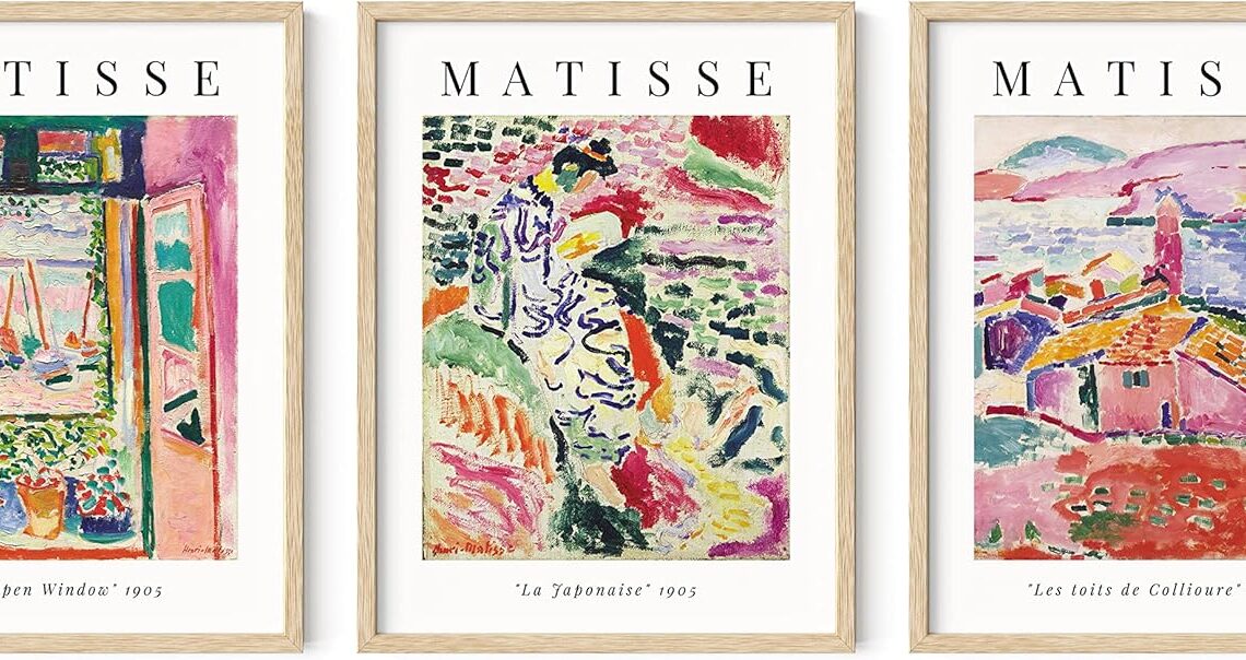 HAUS AND HUES Matisse Wall Art – Set of 3 Artist Prints 3 Piece Wall Art, Henri Matisse Wall Art, Wall Art Set of 3, Mattise Art (Beige Frame, 12×16)