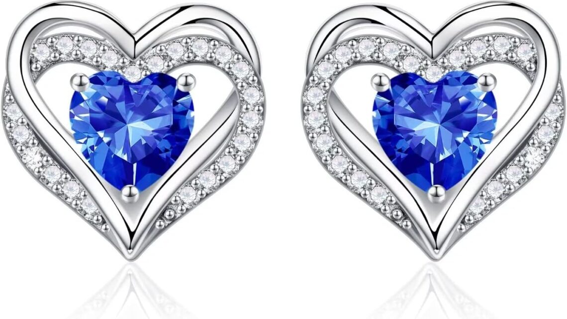 Iefil Valentines Day Gifts – 925 Sterling Silver Heart Stud Birthstone Earrings Anniversary Valentines Day Earrings for Her Mothers Day Birthday Earrings for Women