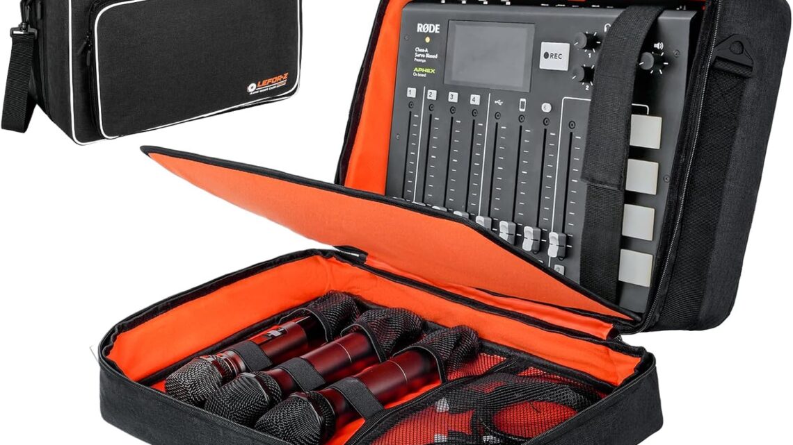 Large Audio Mixer Travel Case Compatible with RODECaster Pro,RODECaster Pro II,TC-Helicon GoXLR,Podcast Mixer Case Protective DJ Mixer Storage Bag for Microphones and More Podcast Equipment