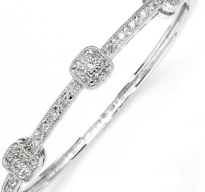 Mariell’s antique reproduction pave bangle bracelet has the look of estate jewelry at a fraction of the cost. Only you will know that this statement bracelet is not a genuine diamond and platinum heirloom. Meticulously hand-set quality cubic zirconia and genuine silver platinum plating make this Art Deco bangle a must-have for any vintage jewelry collection. Our 7″ hinged bracelet measuring 1/4″ wide and features a luxurious safety clasp usually found on high-end fine jewelry. Add 1920’s style to your bridal gown or special occasion frocks with this unique antique reproduction dazzler. With its timeless design, our bangle is not only perfect for weddings, but is a beautiful accessory for jazzing up evening dresses and business attire. With its ‘dress up’ or ‘dress down’ styling, bring a serious dose of vintage glamour to your everyday wardrobe with this classic beauty.