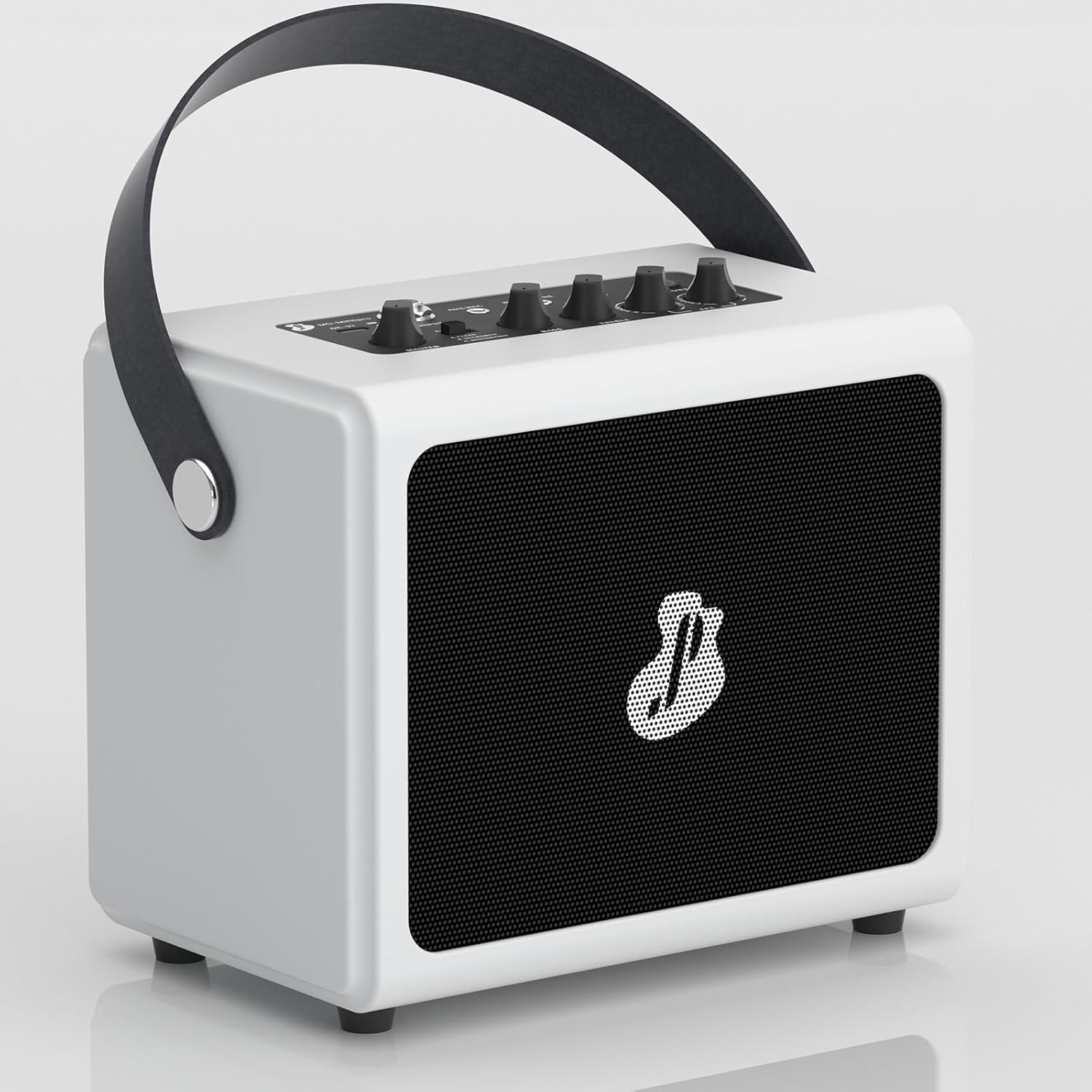 【Mini Portable Guitar Amplifier】—Despite its small size (7.8*5.1*7.1 inches), this amp delivers big sound. With its convenient leather handle design, it’s perfect for all kinds of settings, ensuring you can take your music with you wherever you roam!