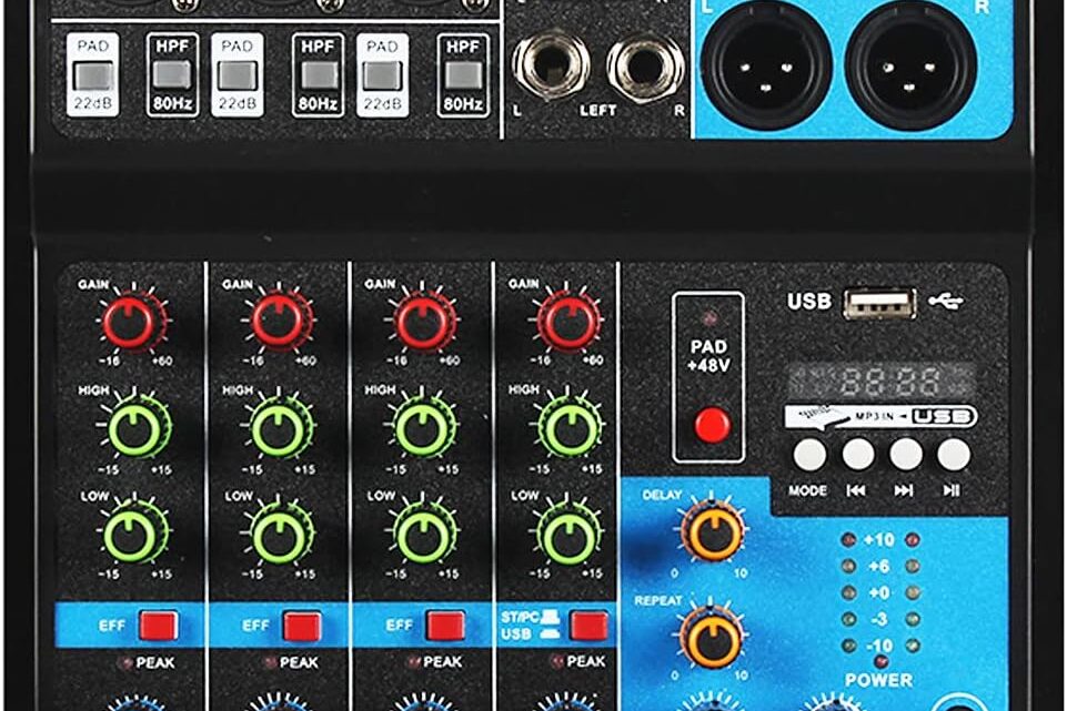 *ALPOWL multifunction 4-channel mixer console with sound card. It can meet users’ many demands, such as home music production, live streaming, karaoke, and so on.