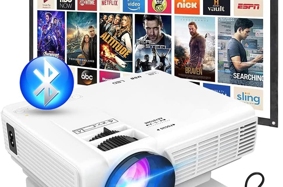 Projector with Two-way Bluetooth, Mini Projector with Projector Screen, Full HD 1080P Portable Video Projector, Home Movie Projector Compatible with HDMI/USB/Smartphone
