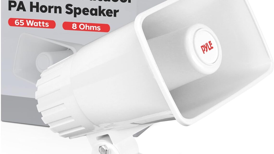 Pyle Indoor/Outdoor PA Horn Speaker – 8” Portable PA Speaker with 8 Ohms Impedance & 65 Watts Peak Power – Mounting Bracket & Hardware Included PHSP5, White