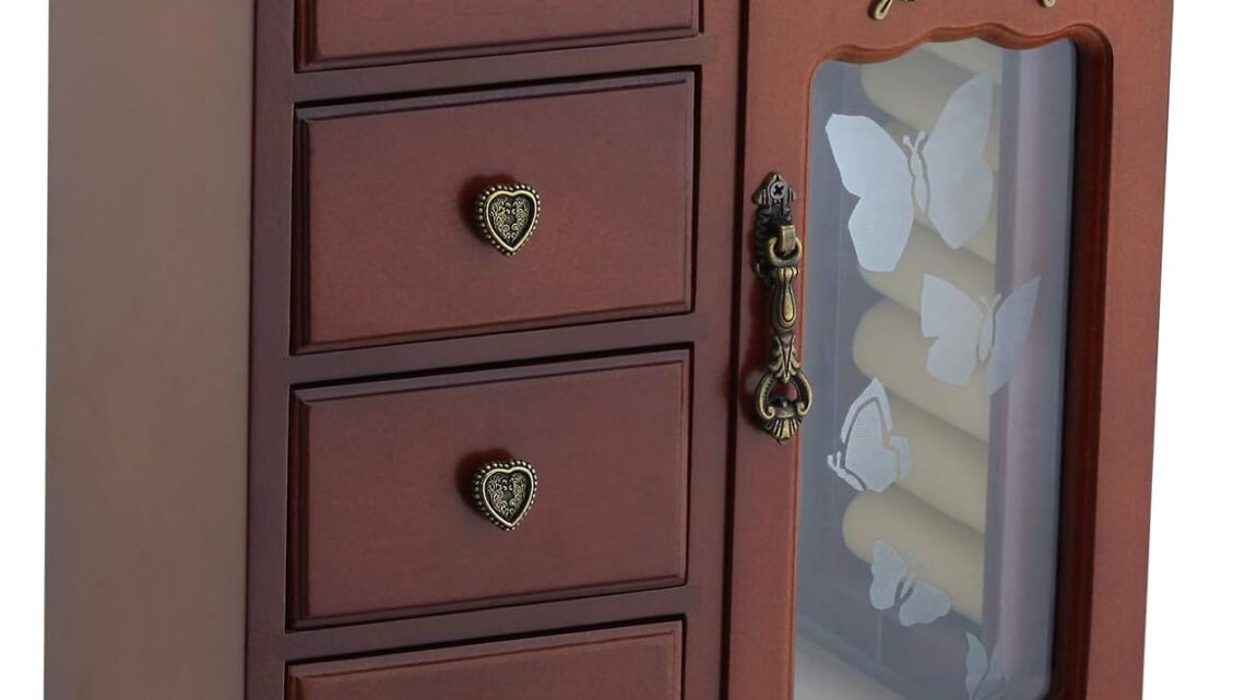 Customers appreciate the jewelry box’s attractive design, sturdy build, and ample storage space. They find it functional and a great gift idea for any age group. The butterfly on the front is a nice touch.