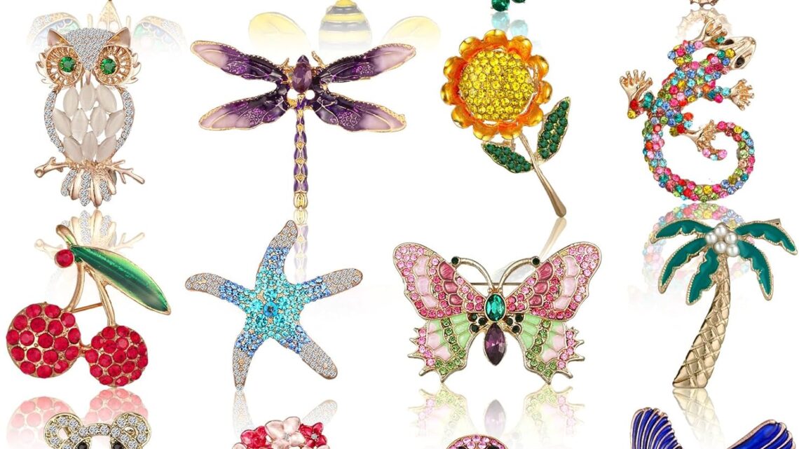 Sasylvia 16 Pcs Women Brooch Set Rhinestone Vintage Animal Insect Plant Pins Brooches Bulk for Women Christmas Gifts