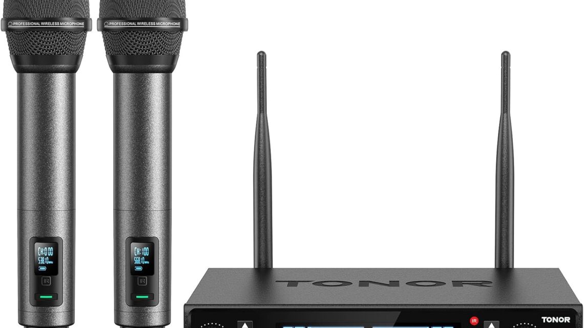 TONOR Wireless Microphone System, Auto Scan & Pair UHF Rechargeable Karaoke Mic, 2×100 Professional Dynamic Cordless Mic for Singing Church Wedding DJ with Adjustable Volume, Quick Mute 262ft TW550