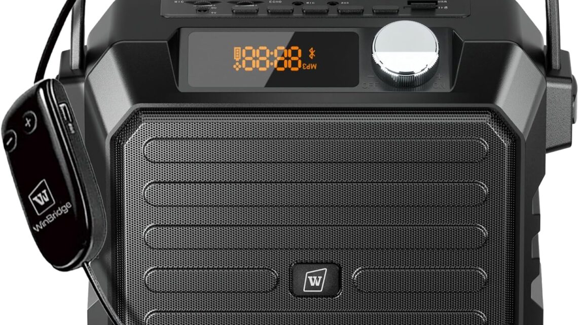 W WINBRIDE Wireless Voice Amplifier for Teachers, 30W Portable PA Speaker System, Wireless Microphone for Classroom Teachers Fitness Instructor, Bluetooth Headset and Speaker Echo| Record| FM| TWS| H5