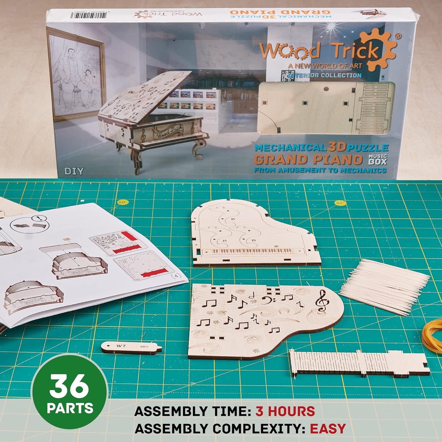 🌍 [HIGH QUALITY] – made of natural birch ply. Materials are recyclable and safe. No glue. Our piano music box is the safest and most entertaining among all 3d puzzles for adults and kids to build