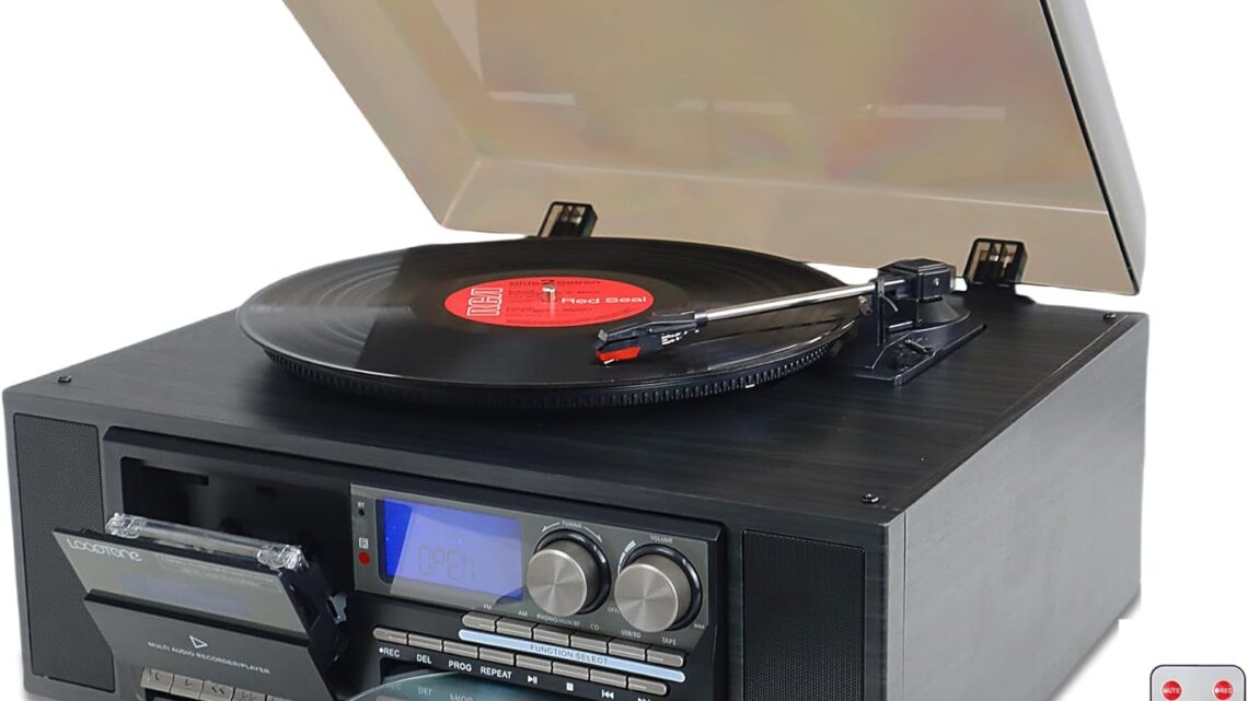 This LoopTone turntable player includes CD player, cassette player, FM AM Radio, USB SD MMC player.A variety of players can meet your various requirements. The versatile design saves you space and money without having to buy other playback devices.