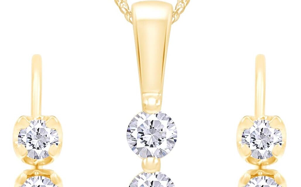Jewel Zone US 3 Stone Natural Diamond Earrings & Pendant Necklace Set 14K Solid Gold (7/8 Ct)