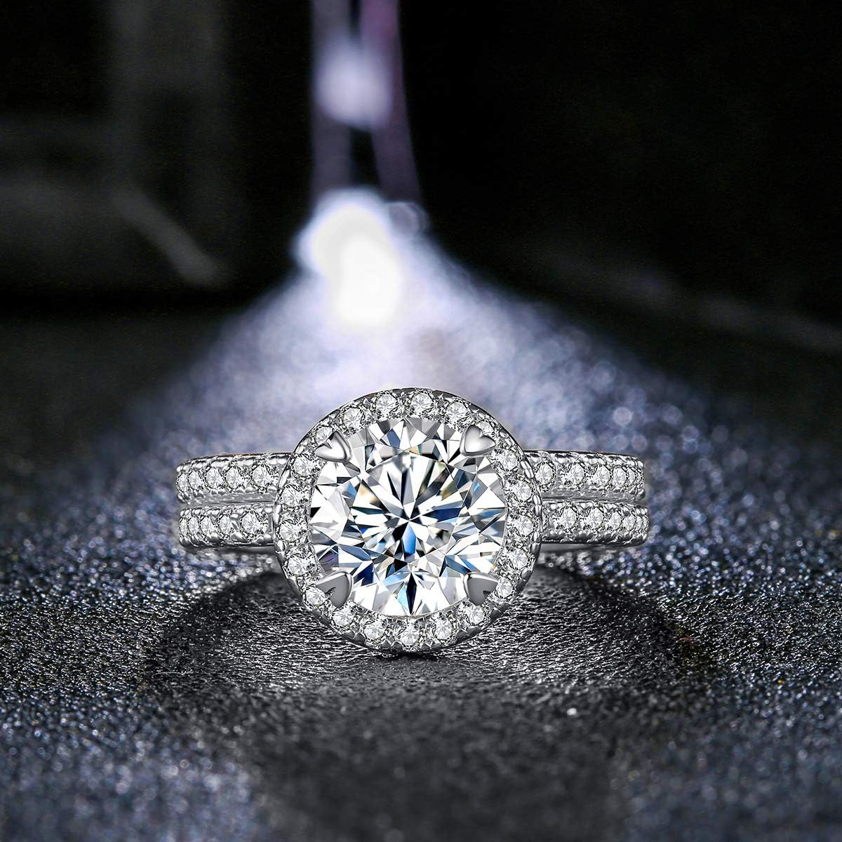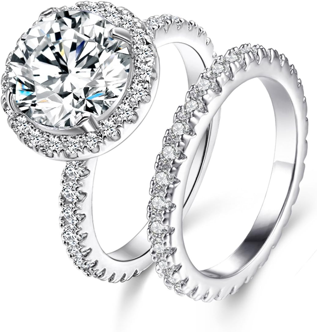 JIANGYUE Classic Bridal Sets Band Ring for Women, 3 Ct 8 Heart 8 Arrow White AAA Cubic Zirconia Rose Gold Big Main Stone Cocktail Engagement Wedding Mothers Day Gifts Rings Size 5 6 7 8 9 10