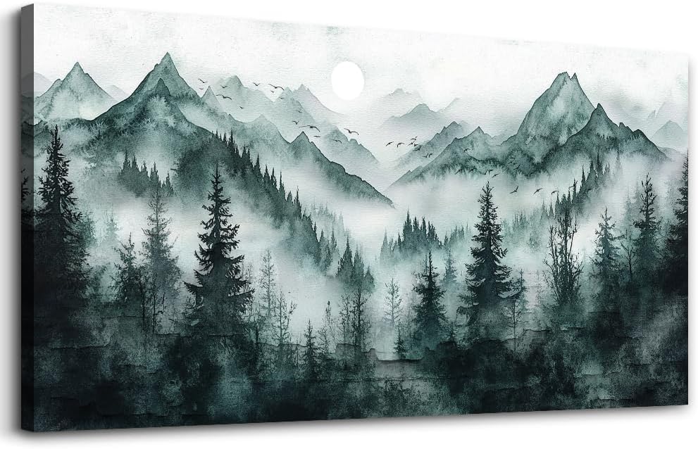 KELIYUAN Canvas Wall Decor For Living Room Bedroom Wall Art For Office Wall Decoration Pictures Modern Misty Forest Ink Landscape Painting Room Hallway Mural Ready To Hang Home Decoration 20×40 In