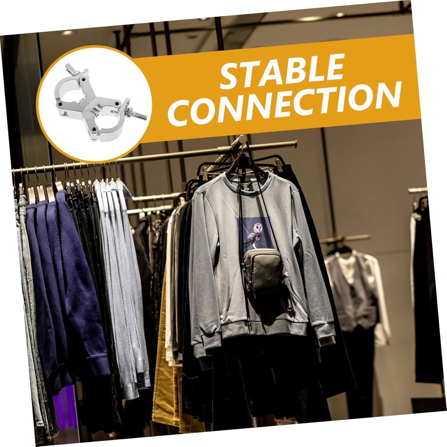 -The moving head light clamp ensures a secure and stable connection, providing peace of mind when using this tool for showcasing or assembling garments pole clamp.