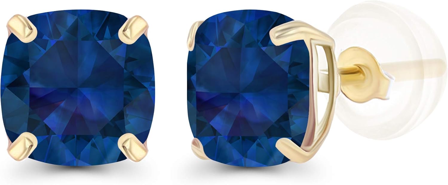 Solid 14K Gold 6mm Cushion Cut Genuine Birthstone Stud Earrings For Women | Hypoallergenic Studs | Natural or Created Gemstone Stud Earrings For Women