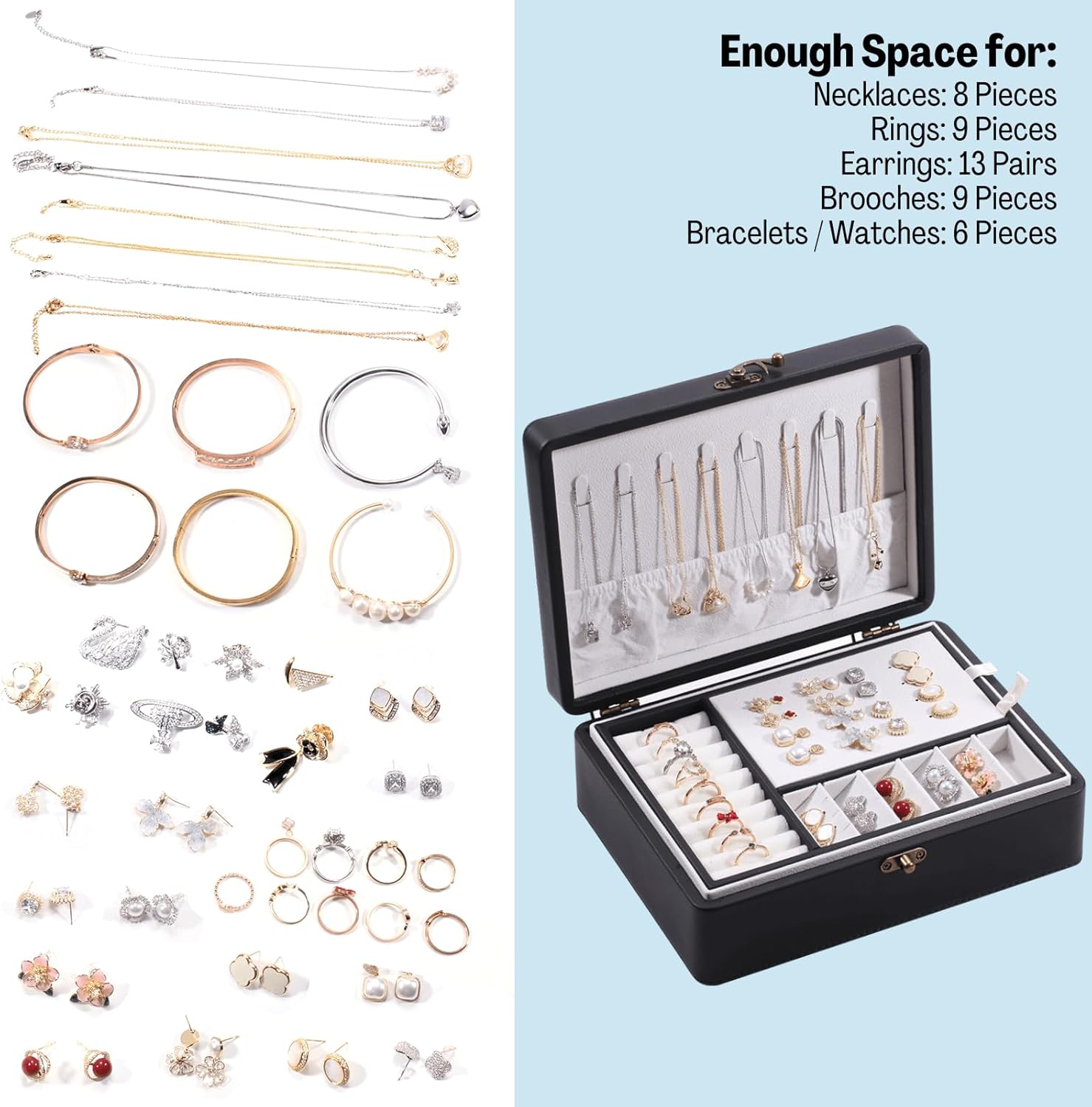 2-Layer Jewelry Box for Women, Floating Effect Leather Jewelry Organizer with Detatchable Tray for Rings, Earrings, Necklaces & Bracelets (Black)