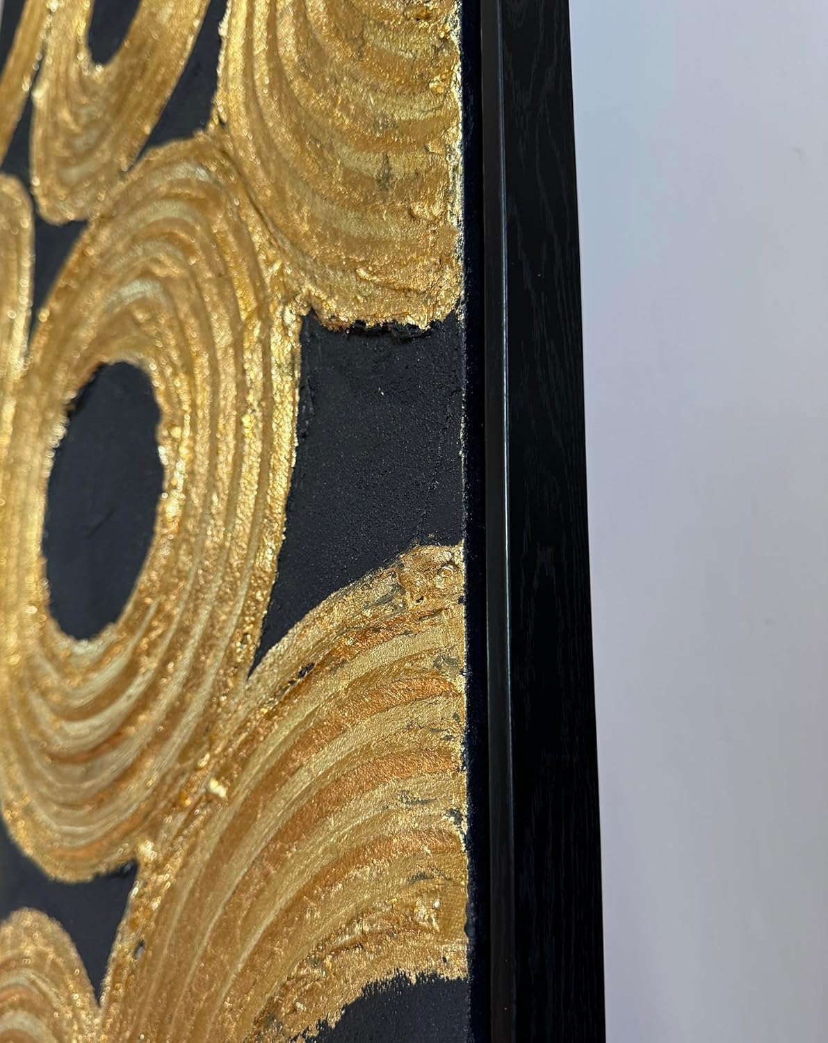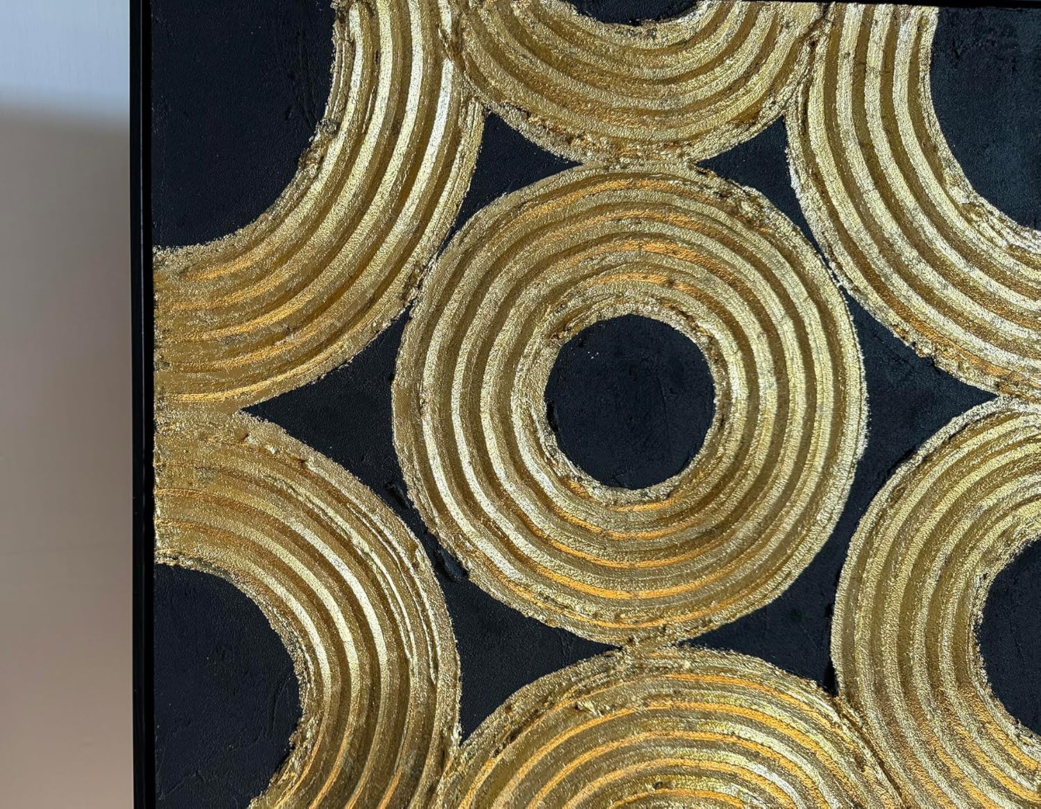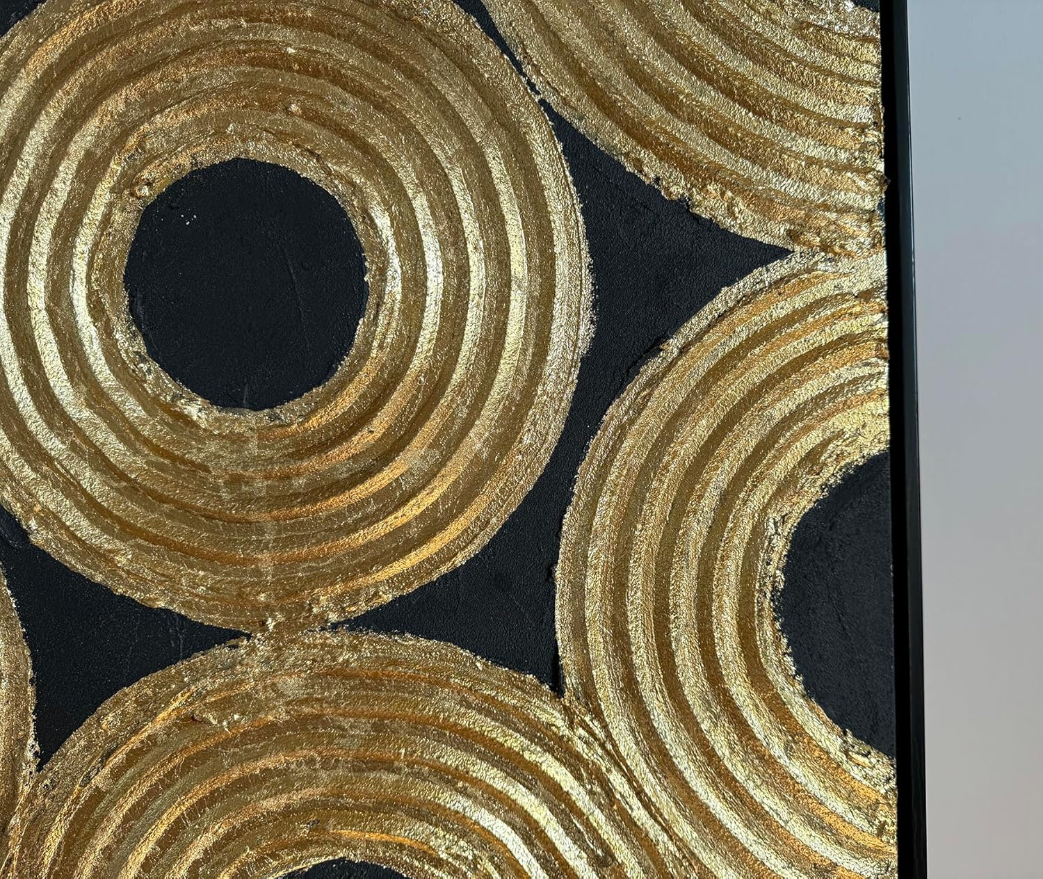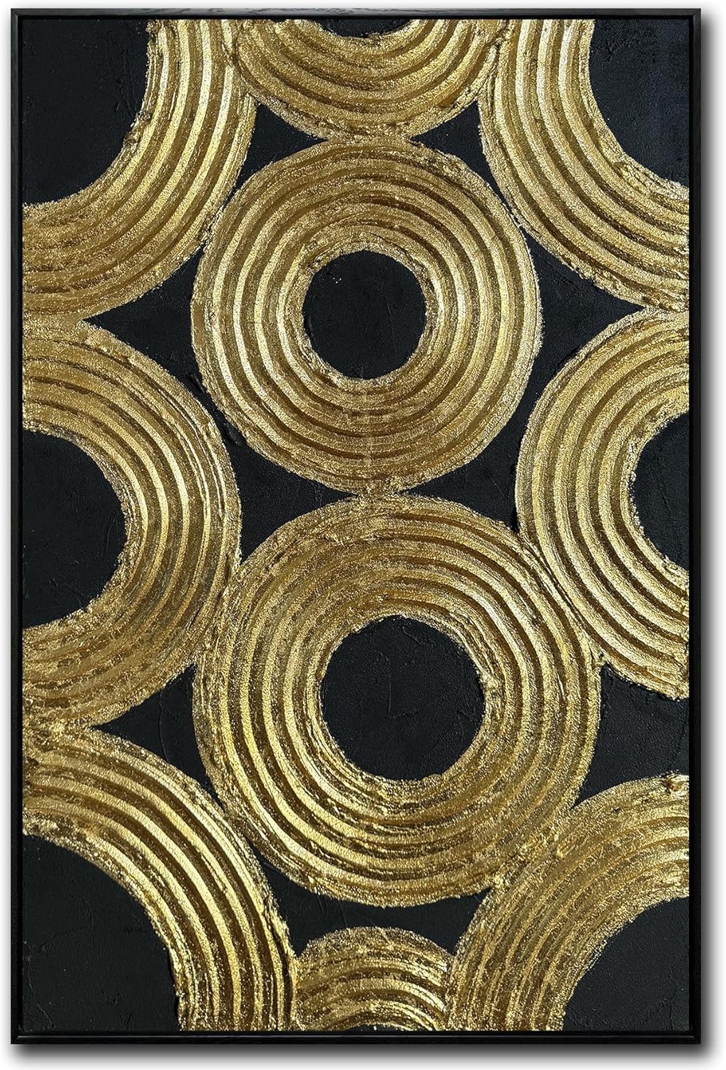 Boiee Art,24x36Inch Hand Painted Abstract Geometric Circle Oil Painting Gloden Textures Black Wall Decor Minimalist Wall Art Framed Acrylic Artwork for Living Room