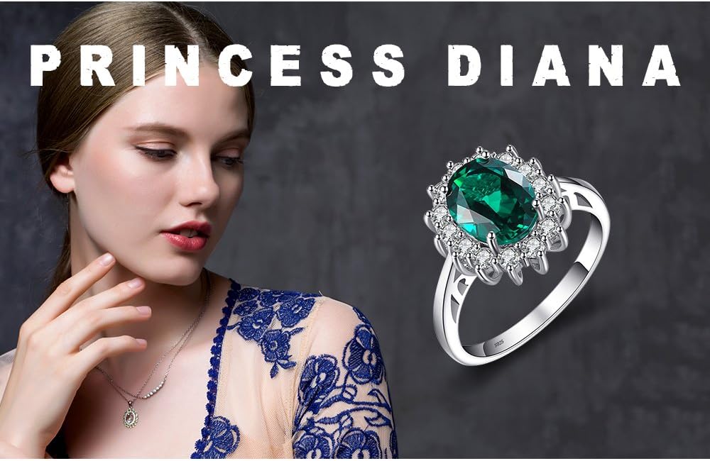 JewelryPalace Princess Diana Kate Middleton Class Gemstone Birthstone Sapphire Halo Engagement Rings for Women, Anniversary 14K White Yellow Rose Gold Plated 925 Sterling Silver Promise Rings for Her