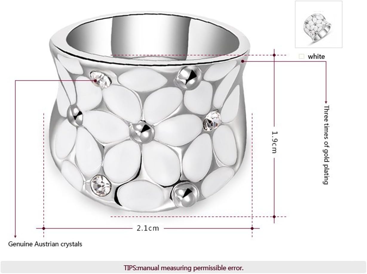 Fashion Month Womens Elegant Enamel Flower White Gold Band Bloom Petal Platinum Wedding Engagement Ring Crystal Inlay