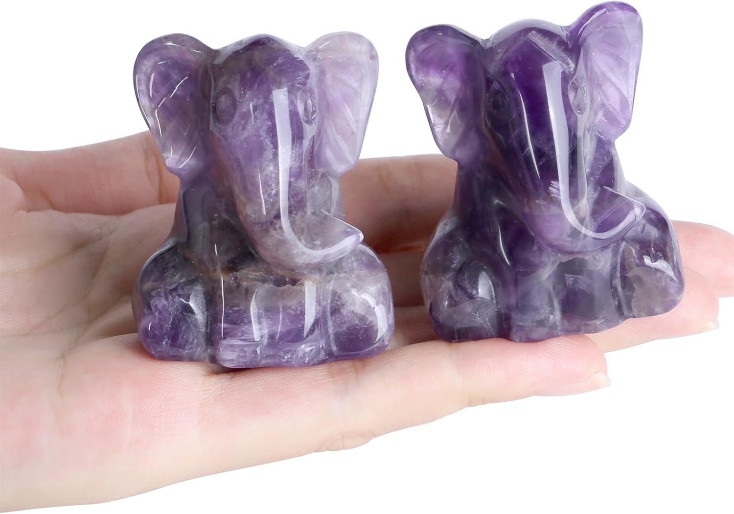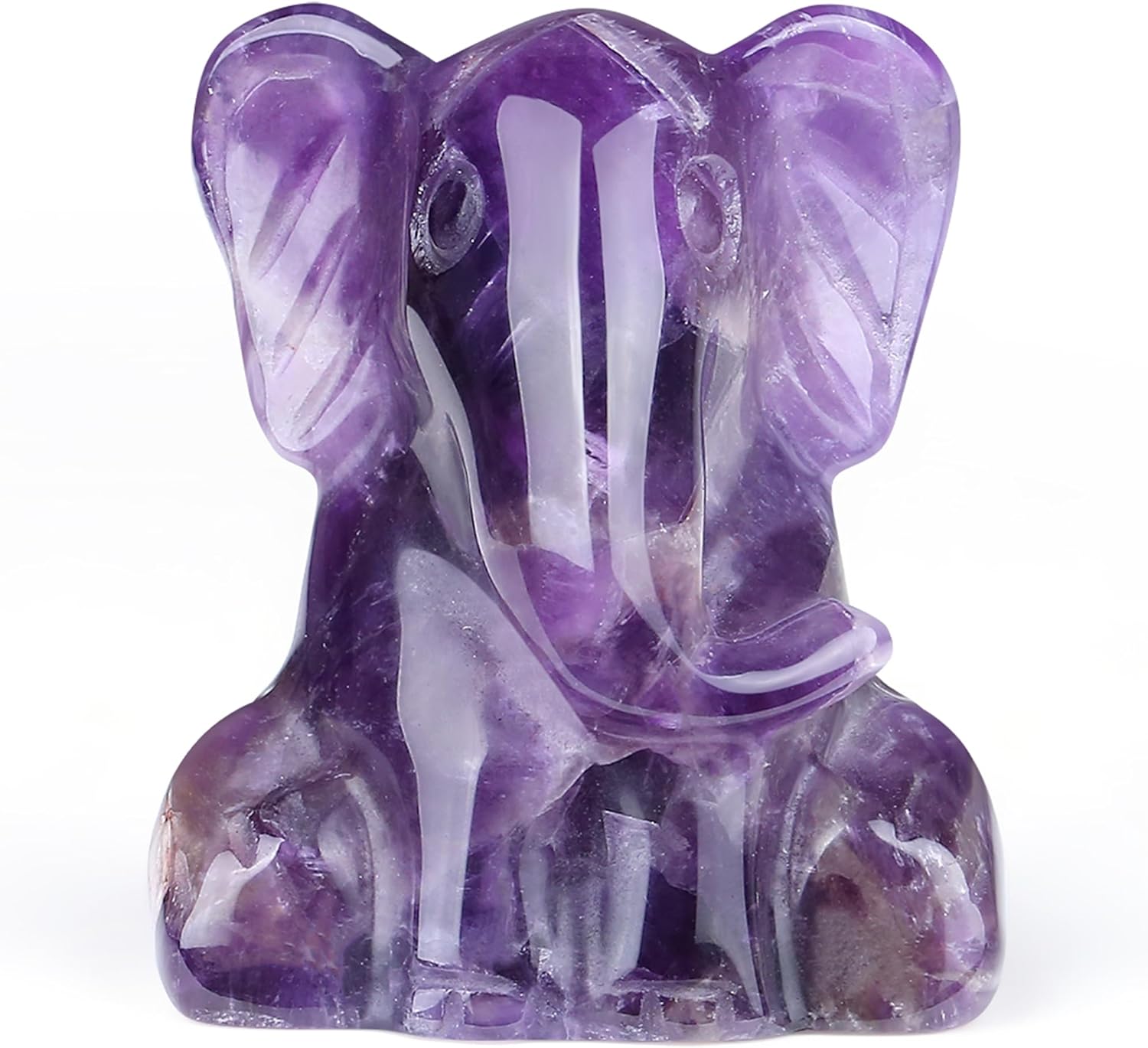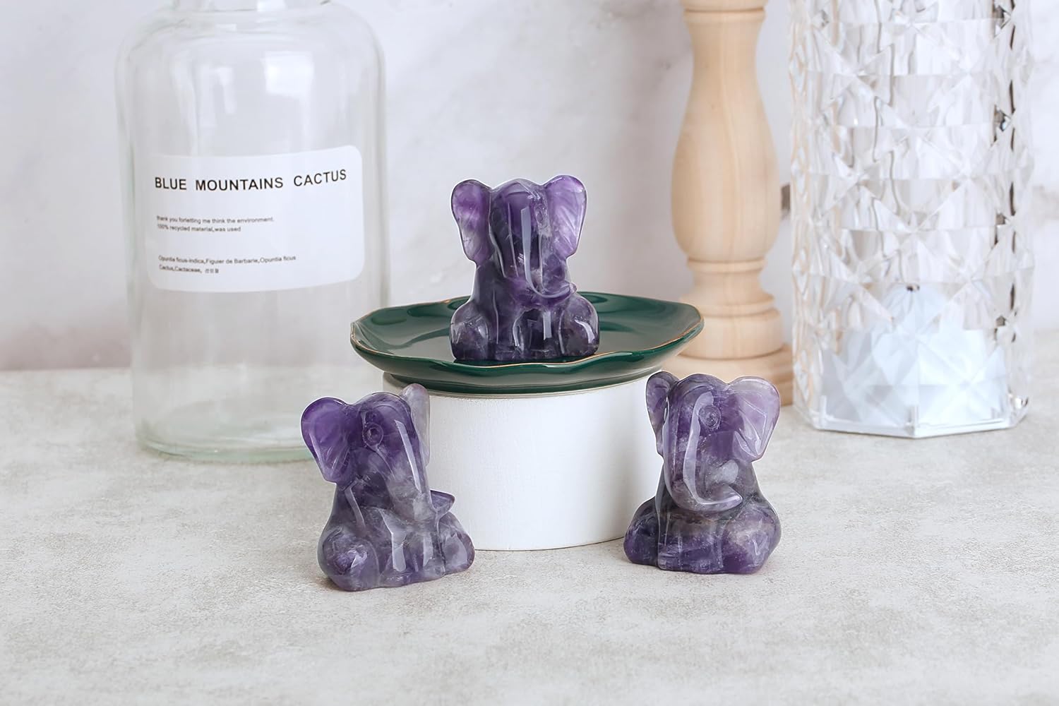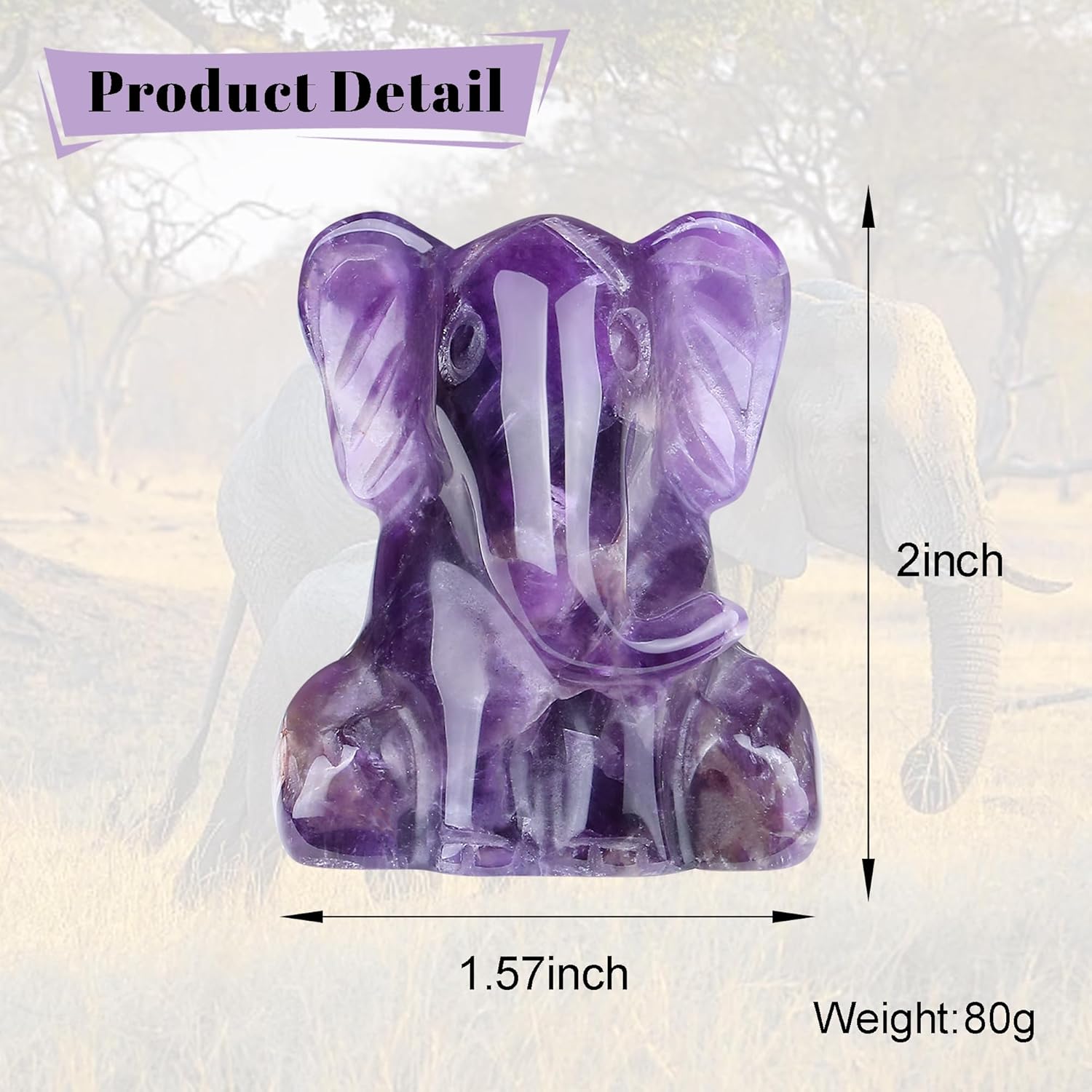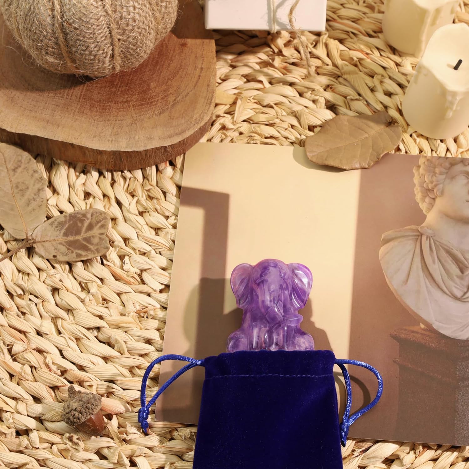 YATOJUZI 2″ Elephant Decor Statue Amethyst Crystal Elephant Gifts for Women Hand Carved Crystal Decor Figurines Animal Statue Figurine Purple Room Office Desk Home Decor Spiritual Gifts