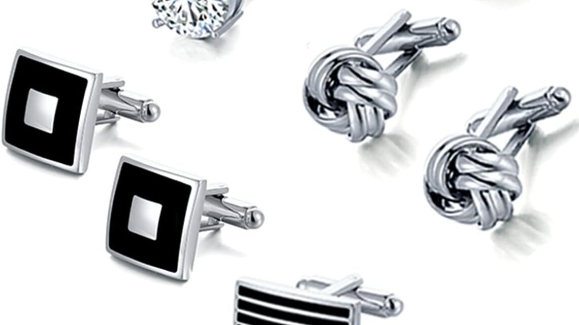 6 Pairs Cufflinks Classic Striped Disc Square Spherical Knot CZ Rectangle Cylindrical Cufflinks Set for Men