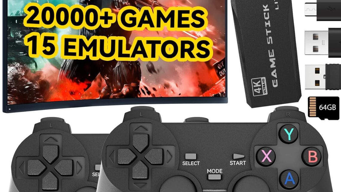 Retro Gaming Console, Wireless Game Stick Plug and Play Video Games Console with 20,000+ Games Handheld Game Console Built in 15 Emulators Game Console Support 2 Player & TV HDMI (64G)