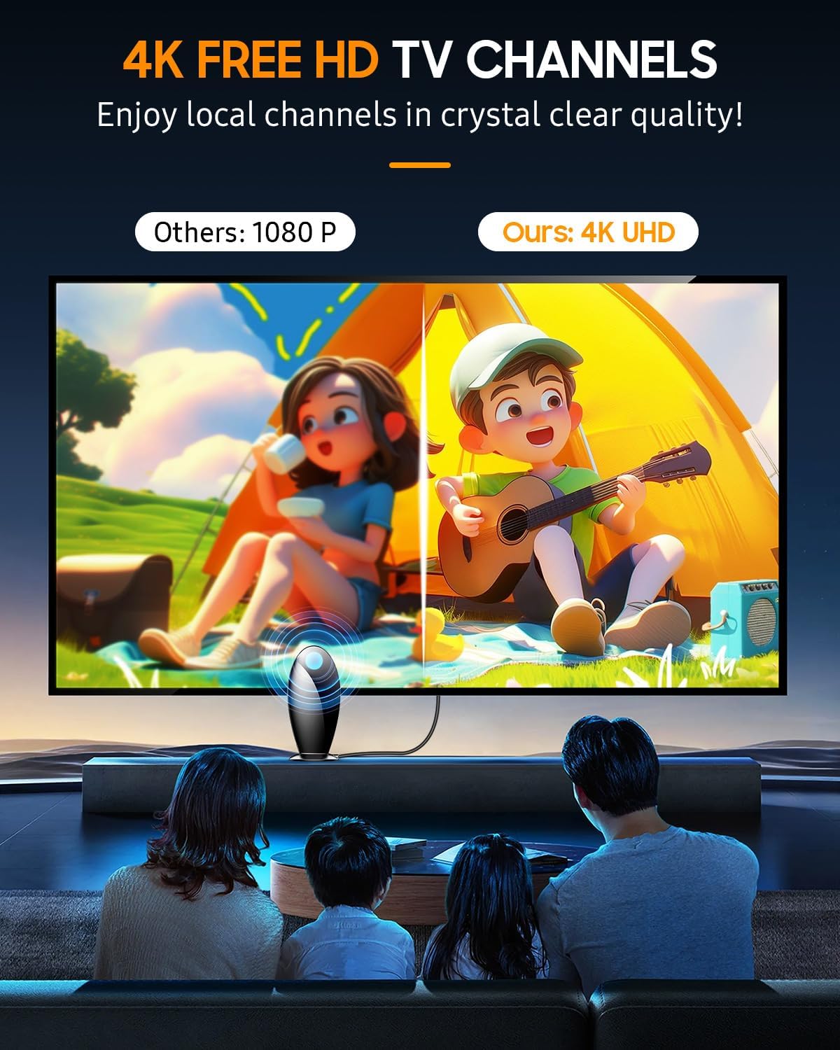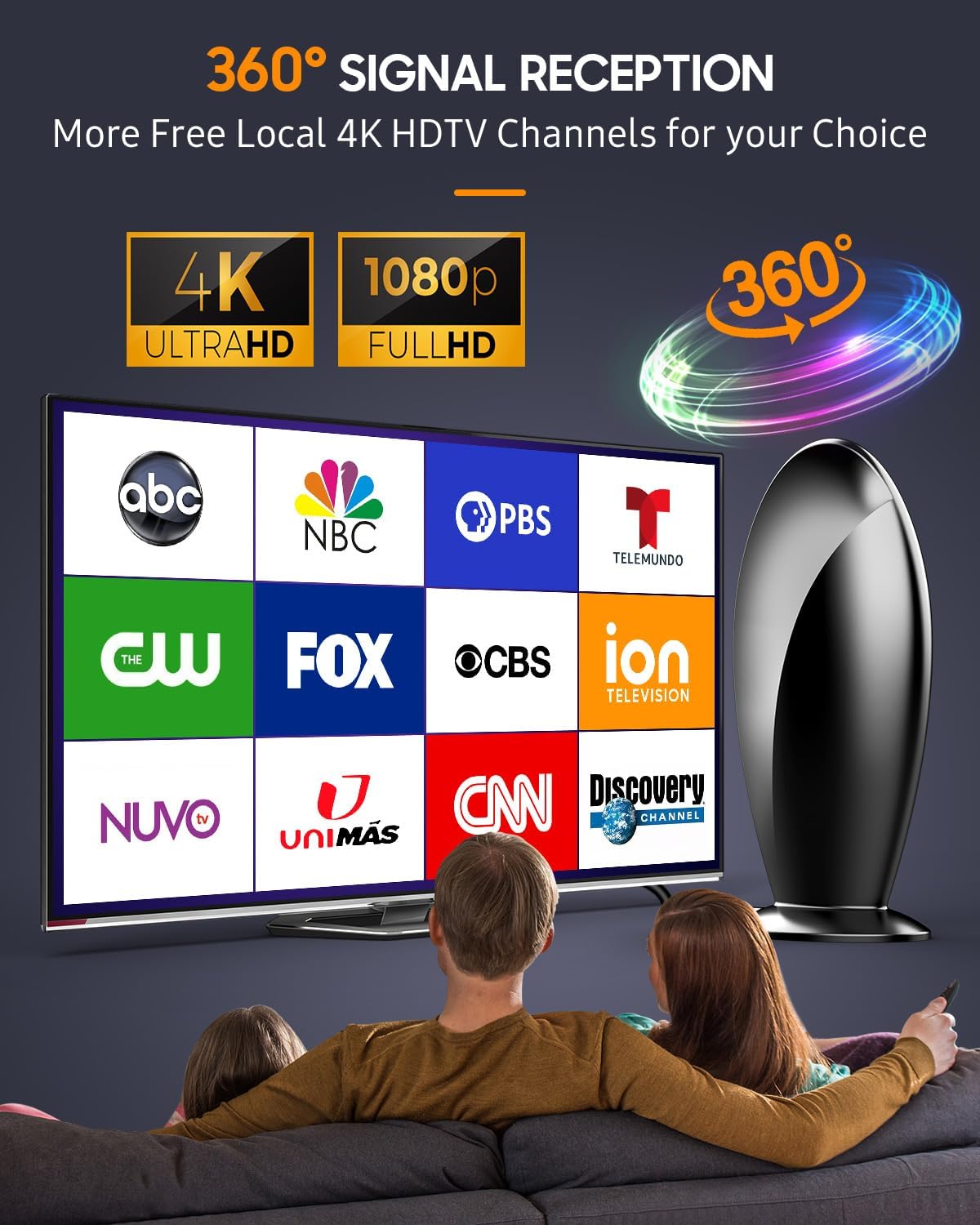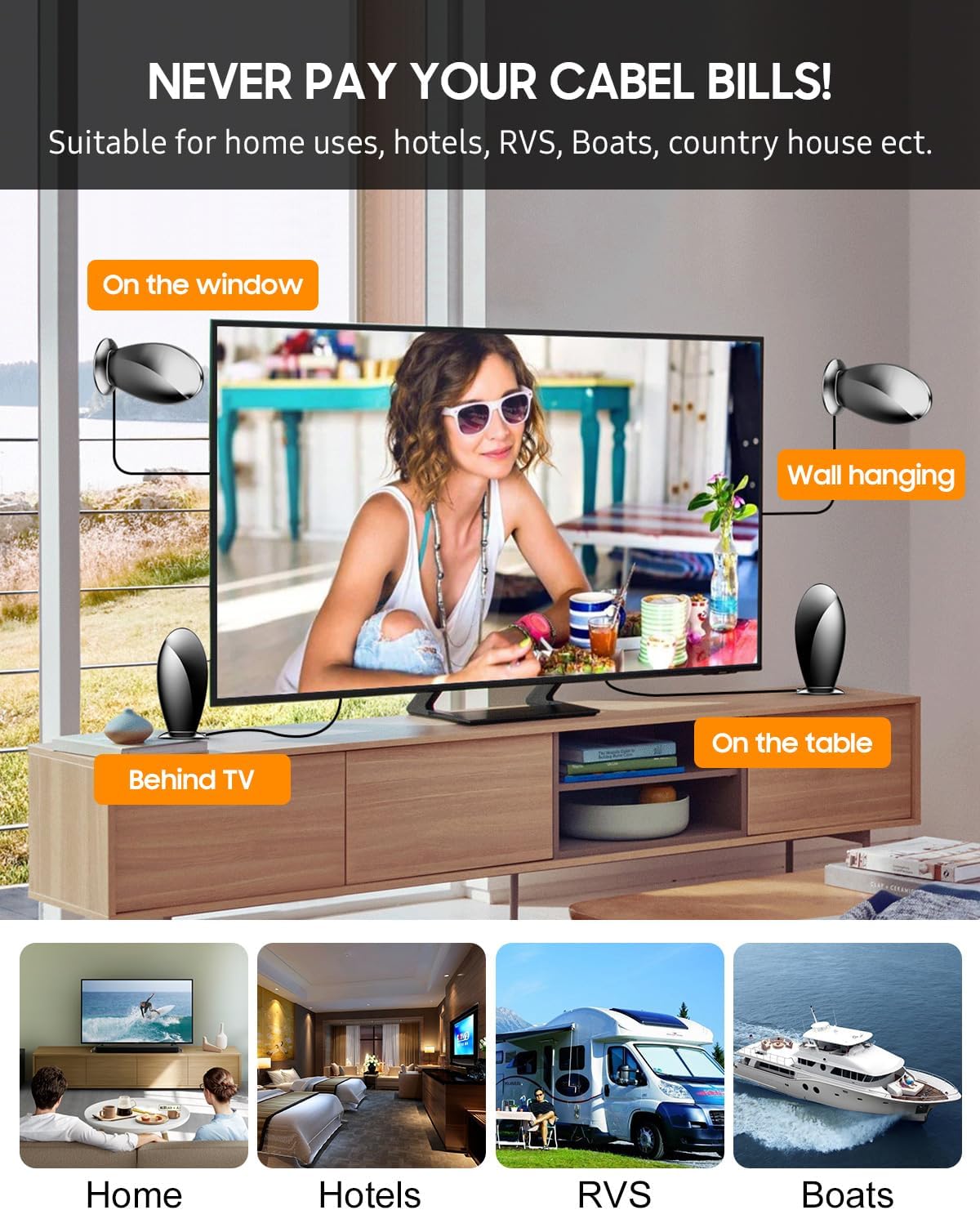 【Free HDTV Channels】:Enjoy watching 4K UHD TV for free! Say goodbye to hefty TV bills with our Full HD antenna for smart TV.Our upgraded tv antenna is designed to work seamlessly with any type of TV.Our digital antenna can receive Full HD channels like ABC,CBS,NBC,PBC,Fox and more.You’ll be able to access these channels for free with our tv antenna.