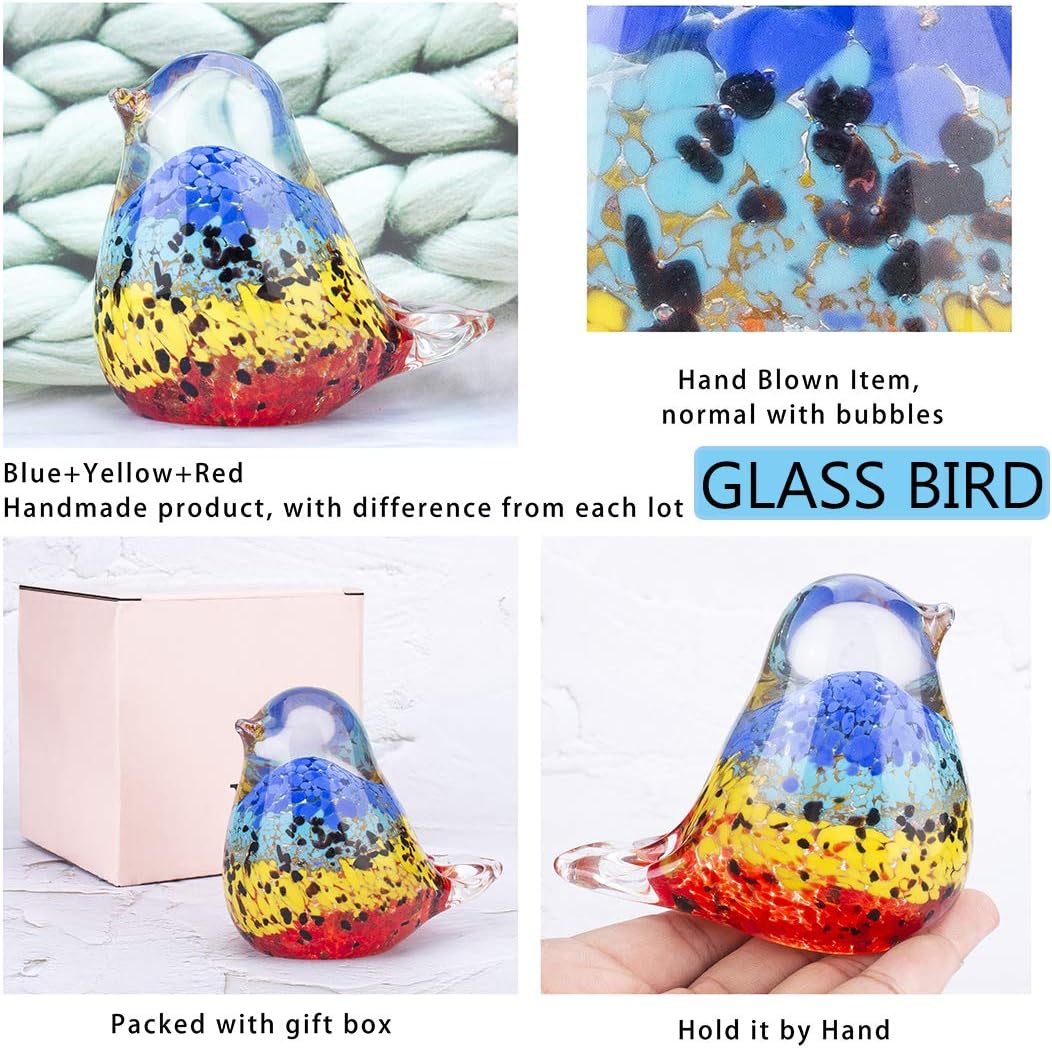 QFkris Art Glass Bird Figurine Handmade Blown Glass Crystal Paper Weight Christmas Birthday Gift Home Table Ornament Decor (N003)