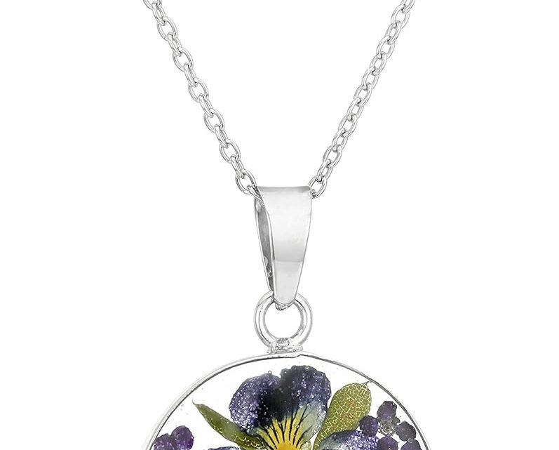 Customers find the necklace pretty and a nice gift. They appreciate the handcrafted flowers in resin surrounded by silver. Many find it a good value for money and a pressed flower. However, some find the pendant and chain too small and need to be a small person to wear it comfortably. There are also complaints about the metal frame and chain being darker than depicted. Opinions differ on the quality and clarity of the necklace.