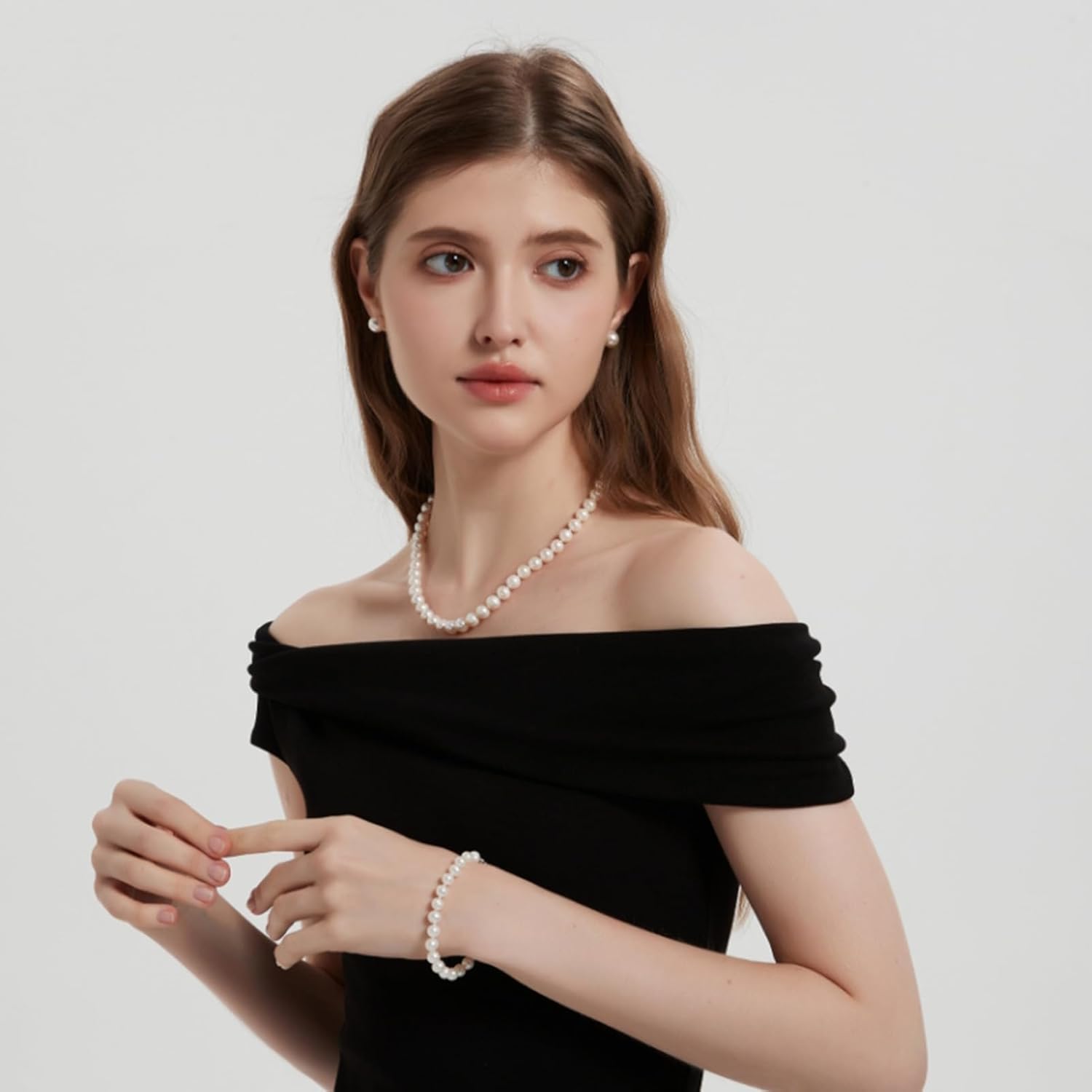 Freshwater Pearl Jewelry Set for Women,Pearl Sets for Women 3 Piece,Pearl Necklaces and Earrings for Women Includeds Pearl Necklace,Pearl Earrings,Pearl Bracelet