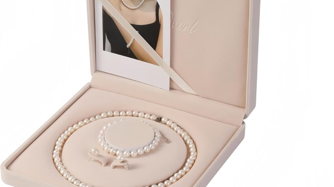 Customers find the jewelry set elegant and a nice gift. They appreciate its beautiful luster and elegant outer packaging design. The set is considered a thoughtful and classy gift, with a reasonable price and quality materials like leather.