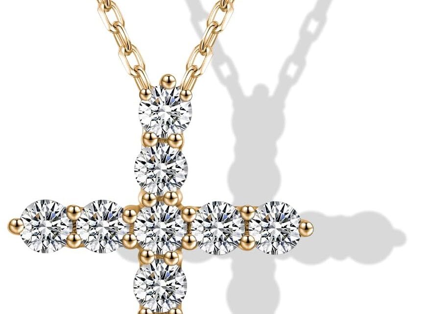 Moissanite Cross Necklace for Women, Gold or Silver Cross Necklaces for Boys and Girls, Sterling silver Cross Necklaces for Men, Cross Faith Pendant Necklace for Father’s Day