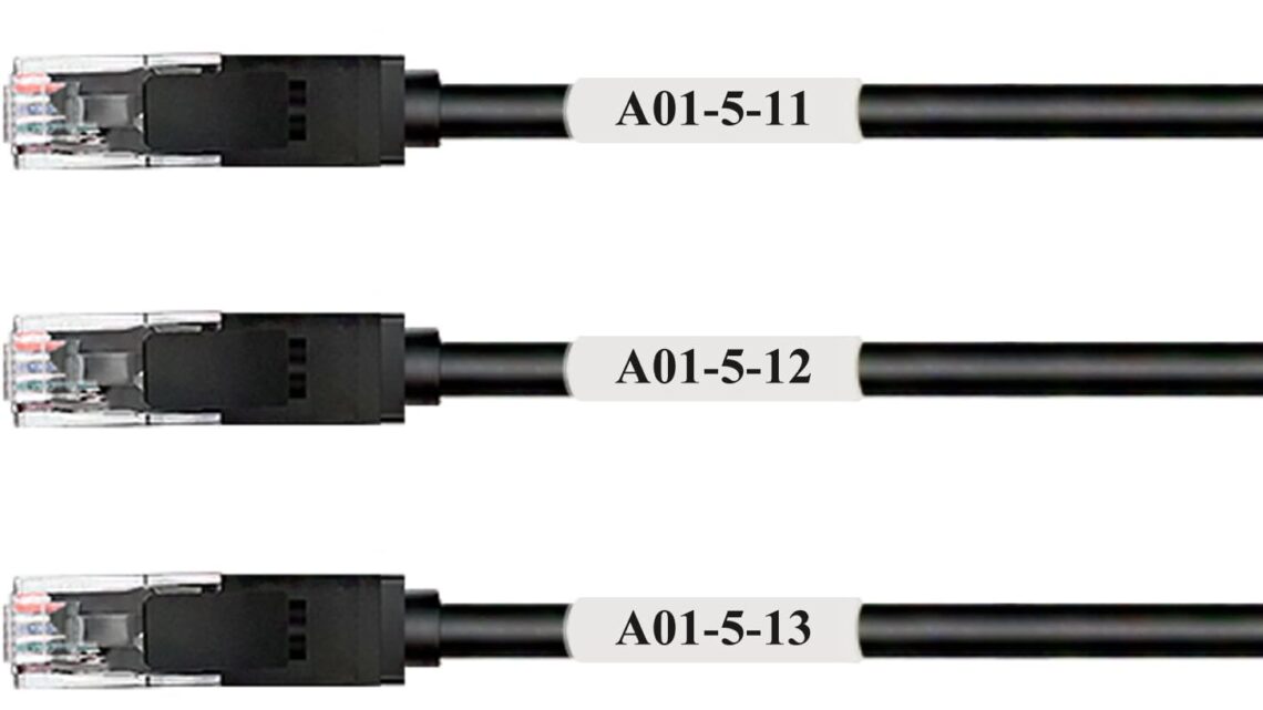 PARAMETERS: Label size: 57.2mm × 25.4mm (2.25” × 1”); print-on area: 25.4mm × 19.1mm (1” × 0.75”); sheet size: US Letter, 215.9mm × 279.4mm (8.5” × 11”). Applicable cable outside diameter: 6.1mm ~ 12.1mm (0.24″ ~ 0.48″); Wire Range: Network Ethernet cables (Cat. 6 FTP/Cat. 6A UPT/Cat. 6A FTP, Cat.5e UTP/Cat.5e FTP); 8 – 4 AWG; AC power cables; Phone & Tablet cables; etc. Please measure the cable outside diameter first if you don’t find yours within the recommended wire range.