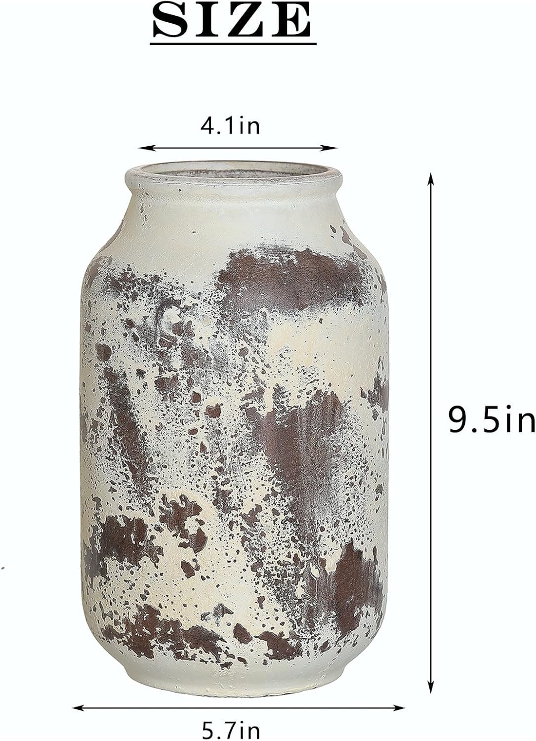 Rustic Farmhouse Large Ceramic Vase,Whitewashed Terracotta Farmhouse Vase, Pottery Decorative Flower Vase for Table, Living Room, Shelf, Mantel,Kitchen,Home Decor, 9.5 Inch (Beige)
