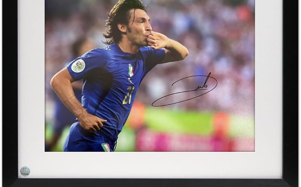 This photo has been signed by Andrea Pirlo on December 14, 2023 in Genoa. Named the “Pearler From Pirlo”, this photo shows Andrea Pirlo celebrating his incredible goal against Ghana at the World Cup in 2006 for Italy. Pirlo played a pivotal role in The Azzurri winning the 2006 tournament, winning the Bronze Ball and being elected to the Team of the Tournament.