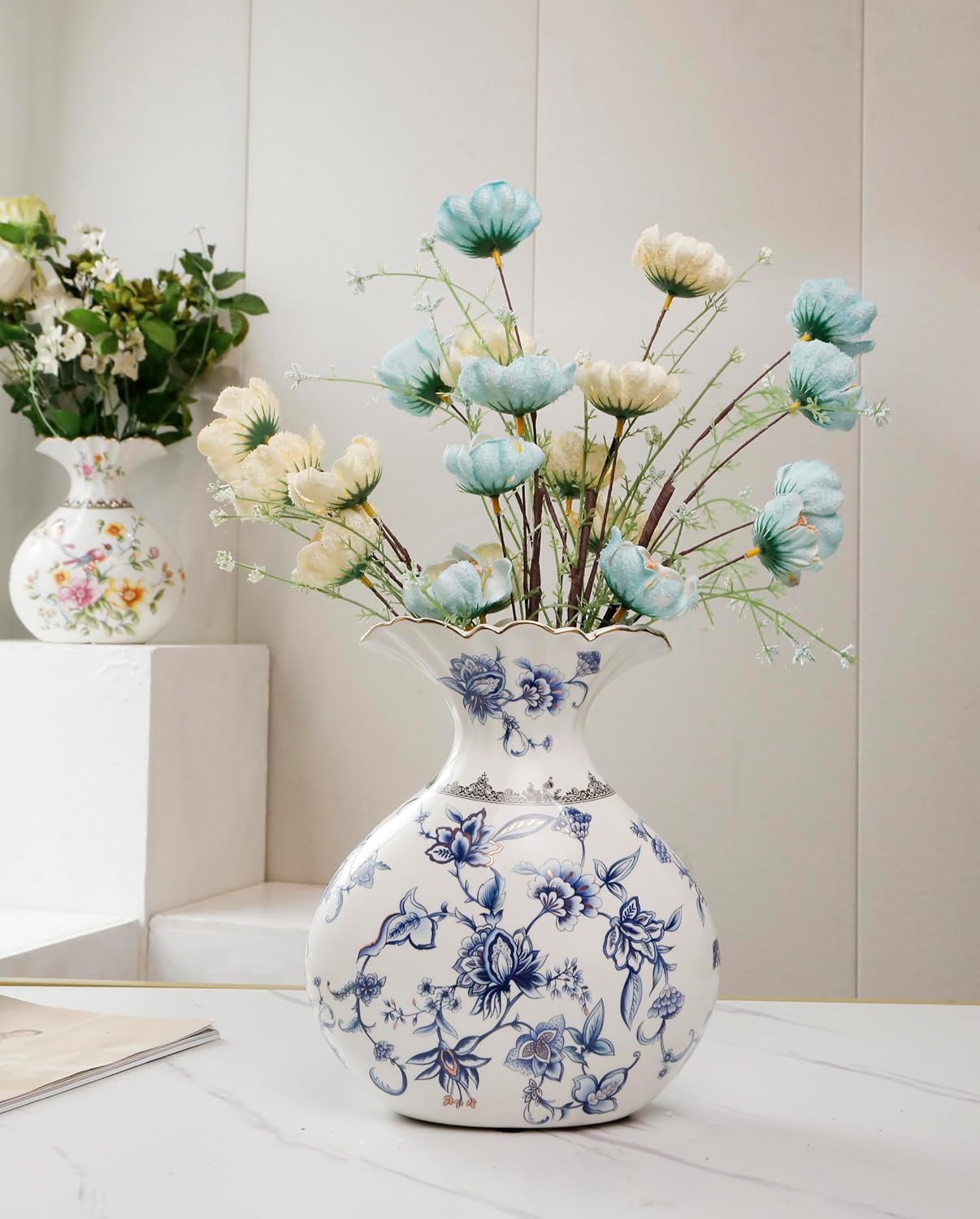 Product Name: Blue and White Flower Ceramic Vase