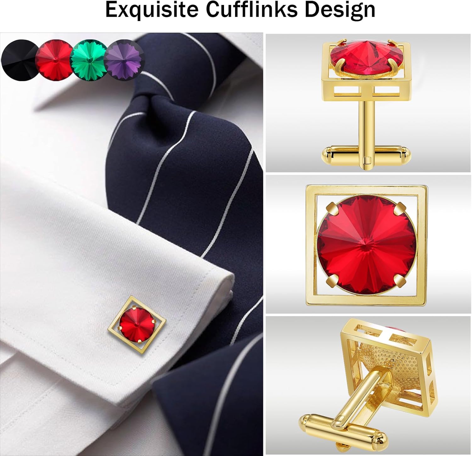 TAIGRAMA Colorful Crystal Gold Cufflinks for Men